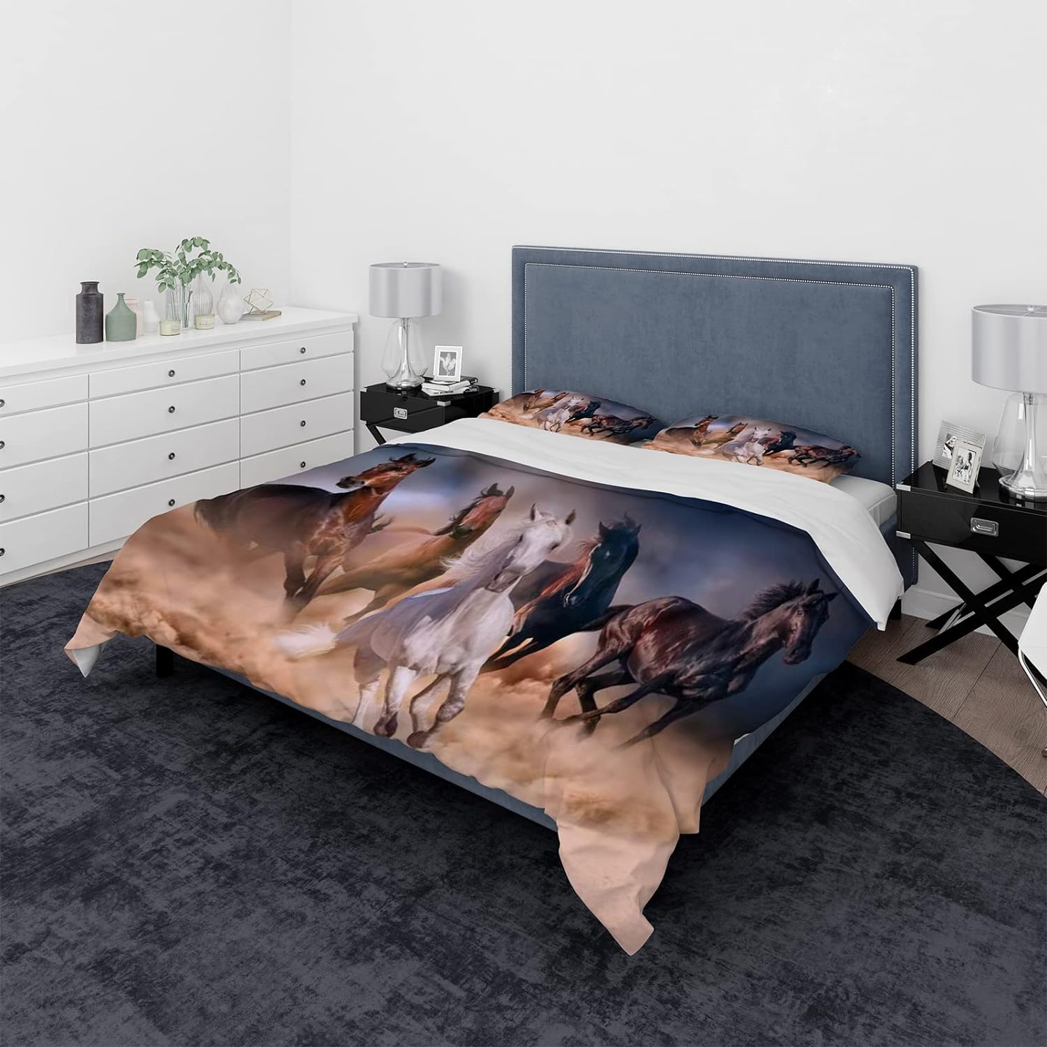 - 🐎【Perfektes Design】 Bettwäsche horse Die Seite des Bettbezugs hat einen versteckten Reissverschluss,praktisch für Ihre Bettdecke.So können Sie Ihre eigene Bettdecke oder anderes Füllmaterial in den Bettbezug geben.Leicht zu demontieren,zu