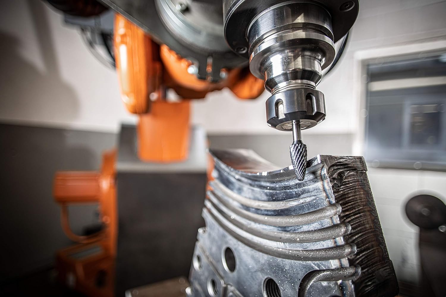 - Die Zahnung ALLROUND zeichnet sich durch eine bis zu 30 % höhere Zerspanungsleistung auf Stahl im Vergleich zu herkömmlich kreuzverzahnten Frässtiften aus