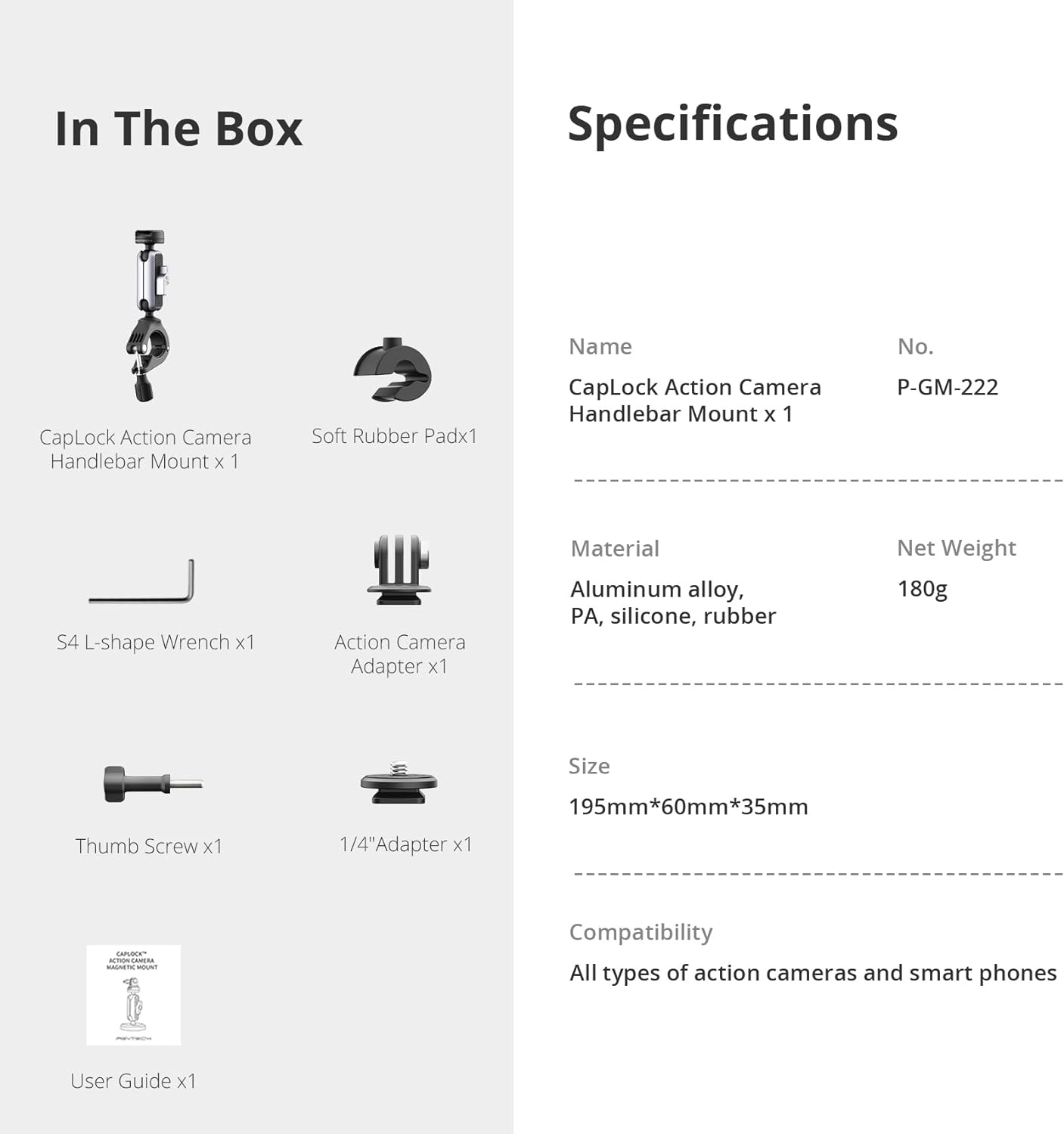 - 【Schnellverschluss-System】 Mit dem PGYTECH CapLock System entfällt das mühsame Drehen und Abnehmen herkömmlicher Sportkamera-Schnittstellenknöpfe. Die Installation erfolgt in einem Schritt, und das Dual-Lock-Design erhöht die Sicherheit.