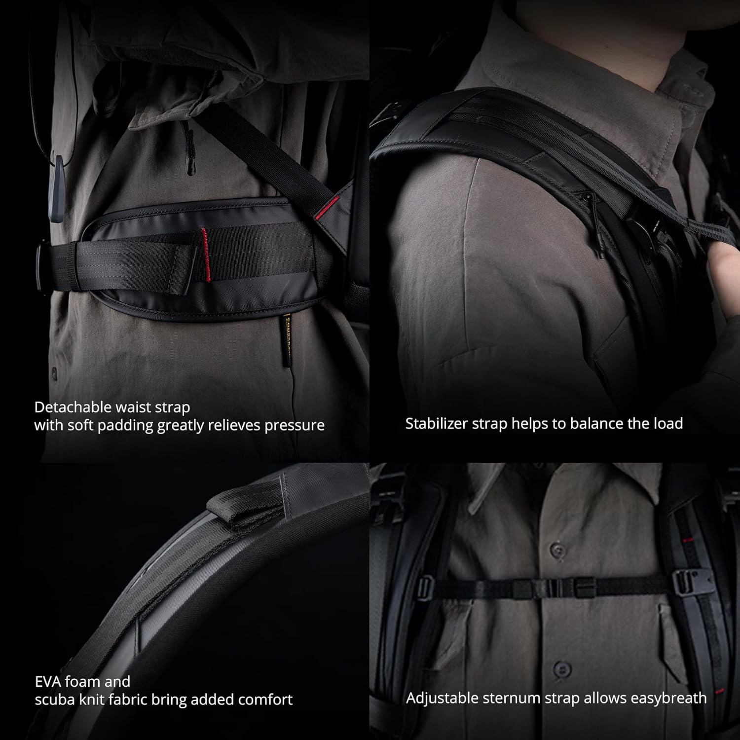 • 【Gürtel + Brustgurt:】Der PGYTECH Ronying 4D Rucksack ist mit einem abnehmbaren, gepolsterten Hüftgurt und einem schnell verstellbaren Brustgurt ausgestattet, der den Druck auf den Rücken effektiv entlasten kann. Kein Stress bei längerem Tragen.