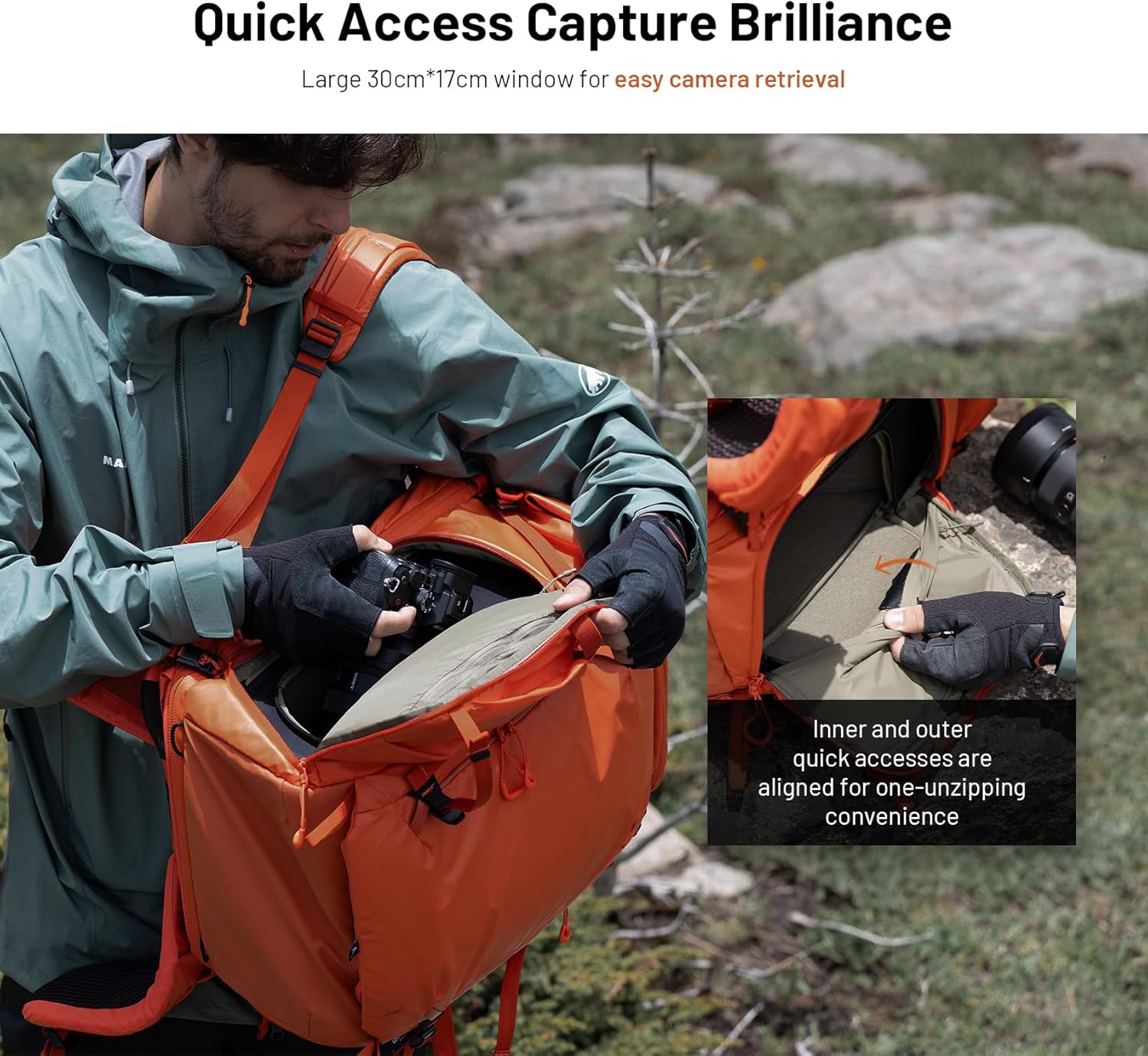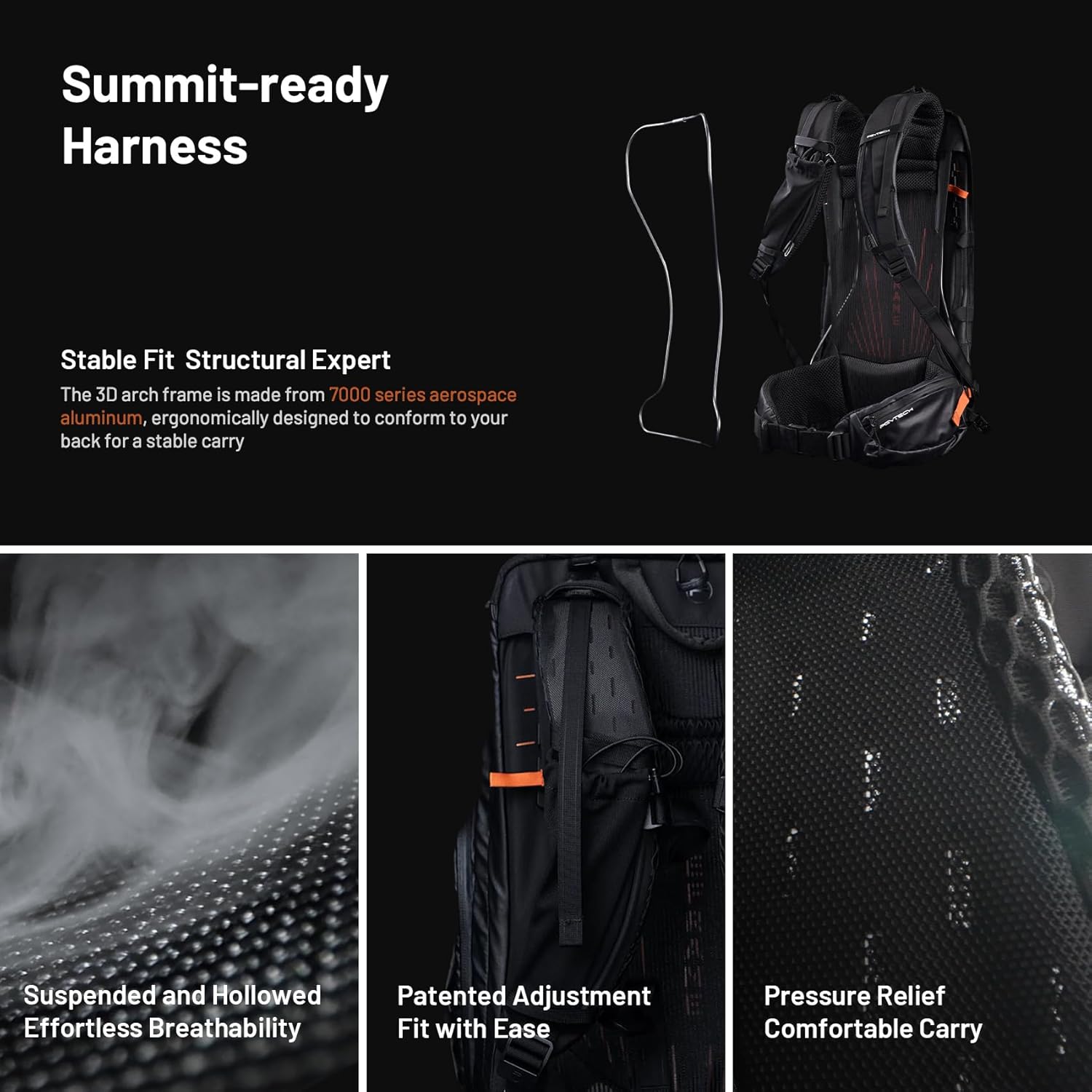 - Komfortables Tragesystem: Der OnePro Flex rucksack führt ein professionelles bergsteiger-tragesystem für kamerataschen ein, das einen 3D-bogenförmigen rahmen aus 7er-Serie flugzeugaluminium für ergonomisches, stabiles und atmungsaktives tragen bietet