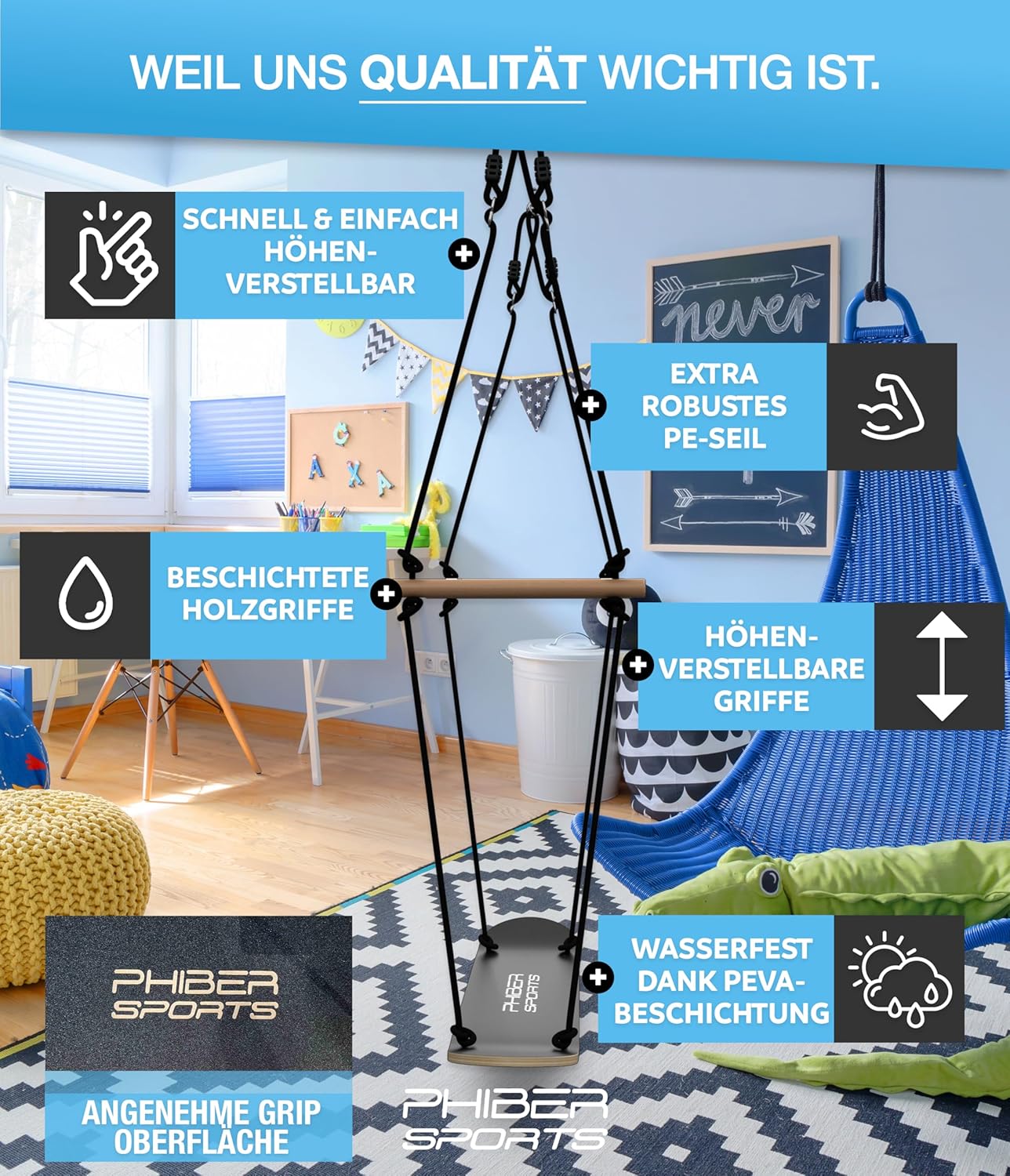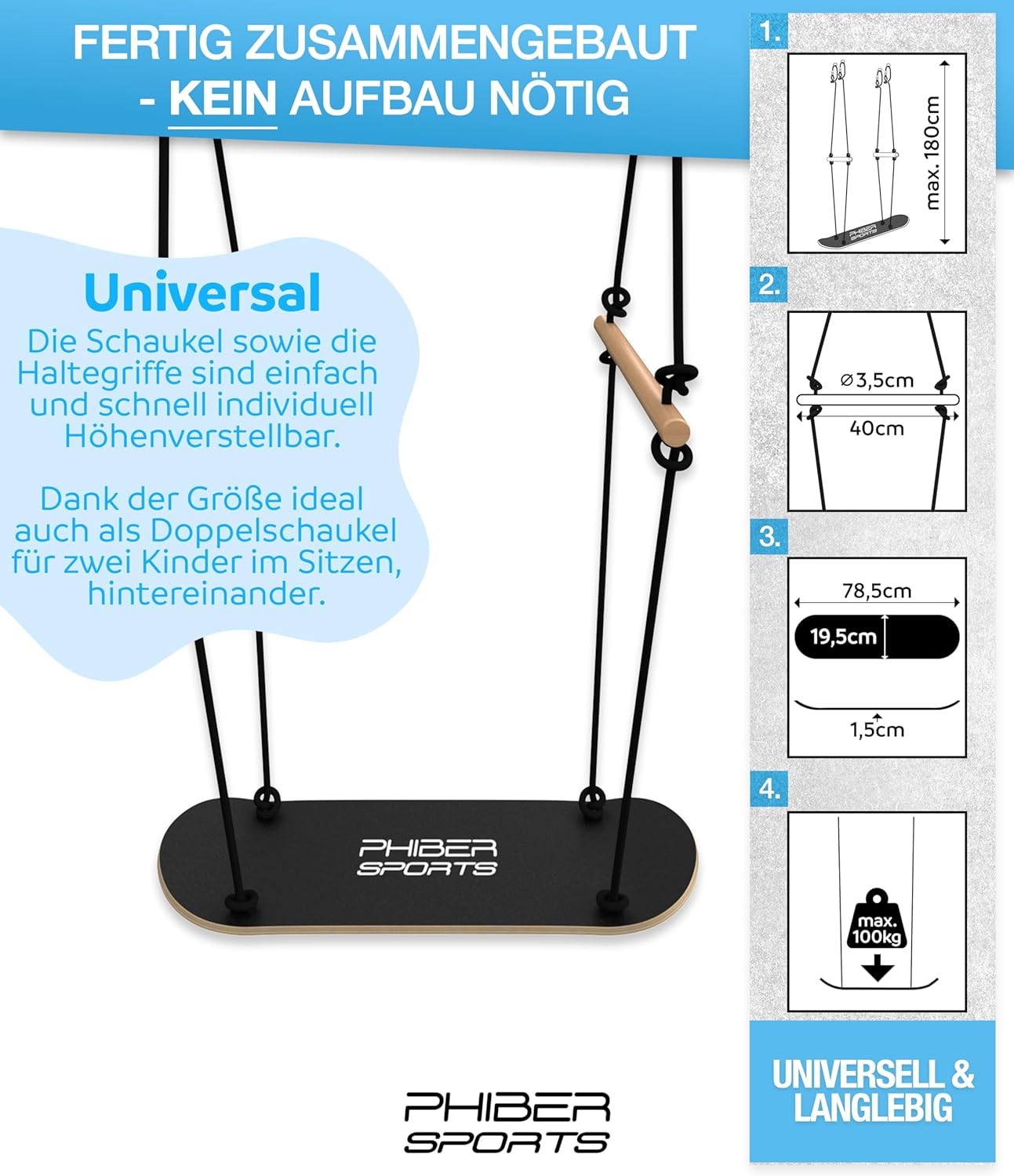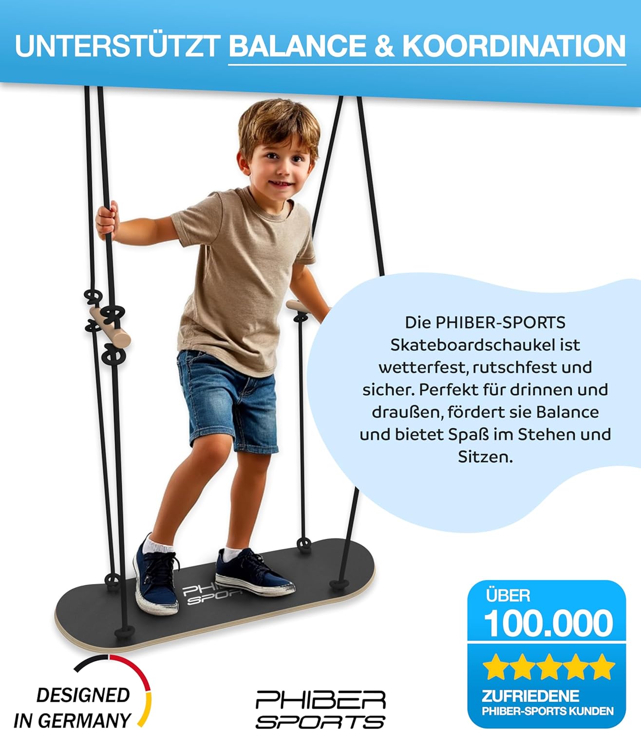 - SICHERHEIT - Mit der Anti-Rutsch-Oberfläche bietet die Skateboard Schaukel optimalen Halt, sodass Kinder sicher sowohl im Stehen als auch im Sitzen schaukeln können, sowie auch als Doppelschaukel genügend Platz bietet.