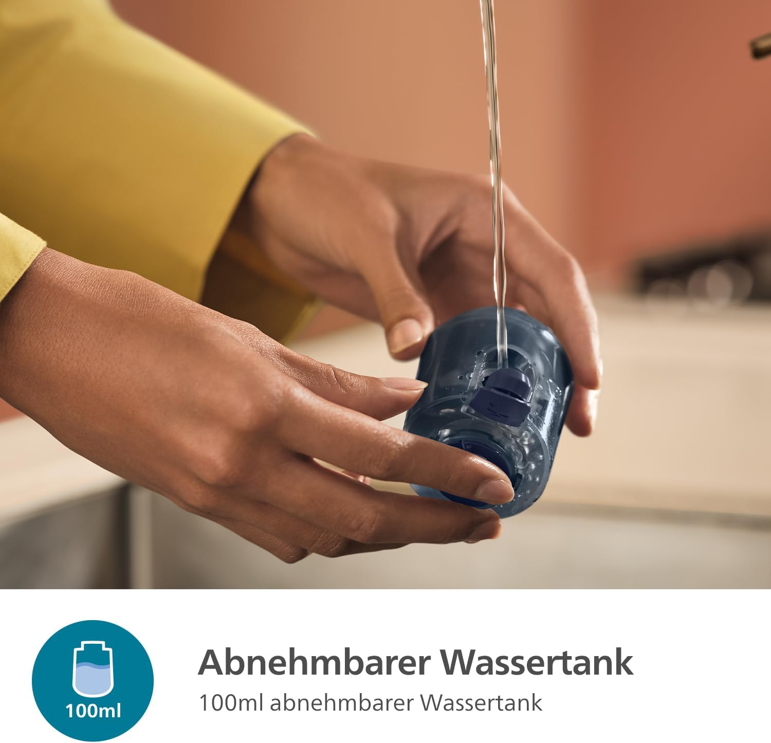 - 100 ml abnehmbarer Wassertank: Zum Bügeln eines kompletten Outfit ohne Nachfüllen. Der Wassertank kann leicht entfernt und bei Bedarf nachgefüllt werden.