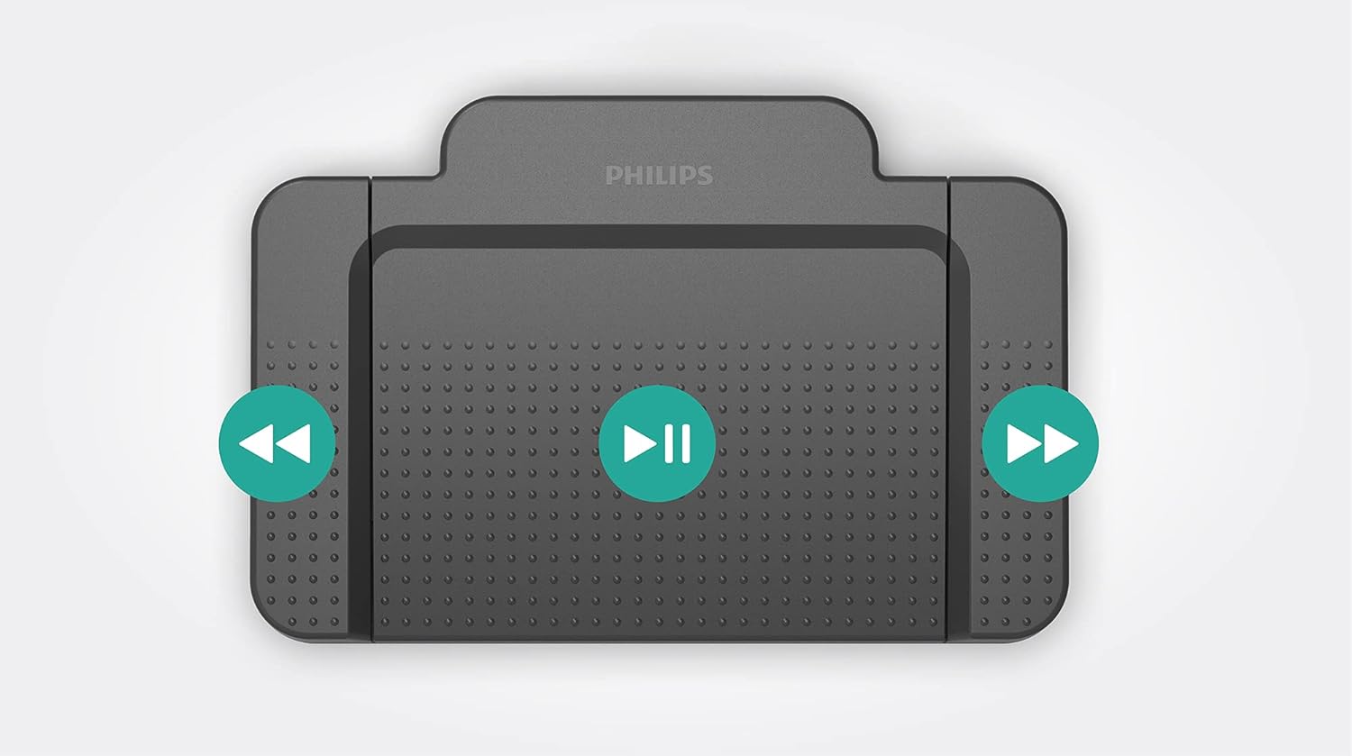 Philips ACC2320 USB-Fussschalter, 3 Pedal-Design Schnellvorlauf, Wiedergabe, Schnellrücklauf, CD mit