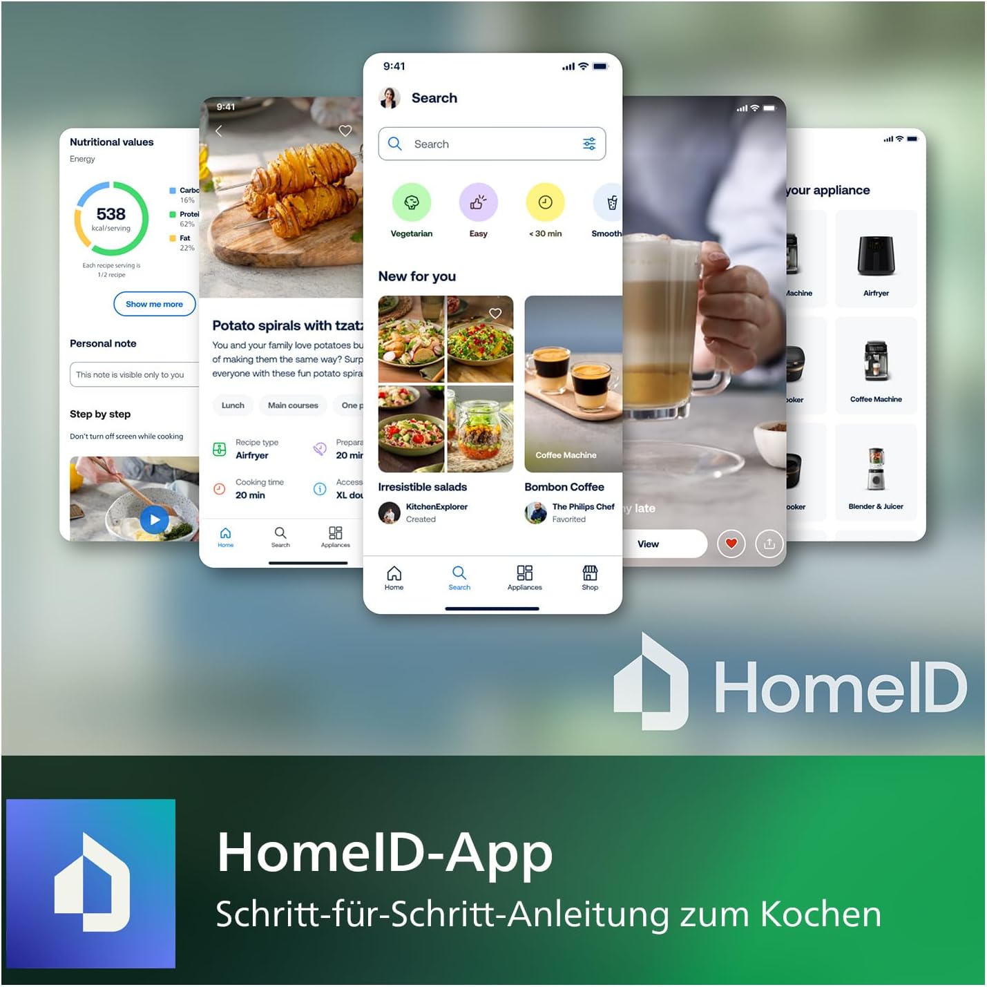 • HomeID-App: Gestalten Sie Ihre Mahlzeiten mit weltweit kuratierten, köstlichen und gesunden Rezepten neu. Geniessen Sie das schrittweise geführte Kochen mit präzisen Einstellungen für perfekte Gerichte