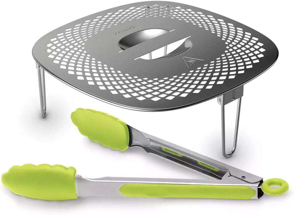 - Lieferumfang: Snack-Deckel mit zusammenklappbaren Füssen für einfaches Aufbewahren, Zange, Rezeptheft