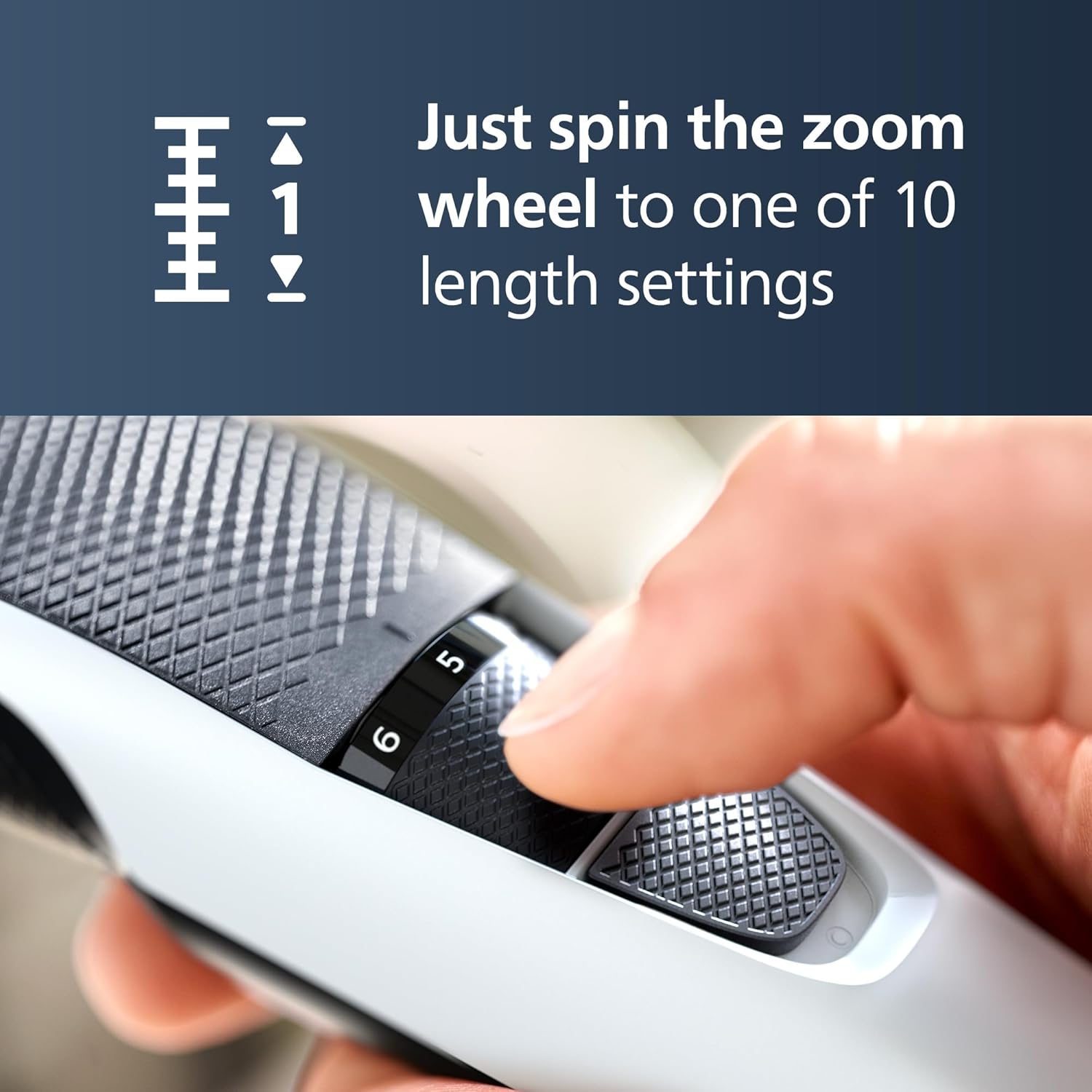 - Der Lift & Trim Kammaufsatz leitet Haare in die Klingen, um einen gleichmässigen Haarschnitt