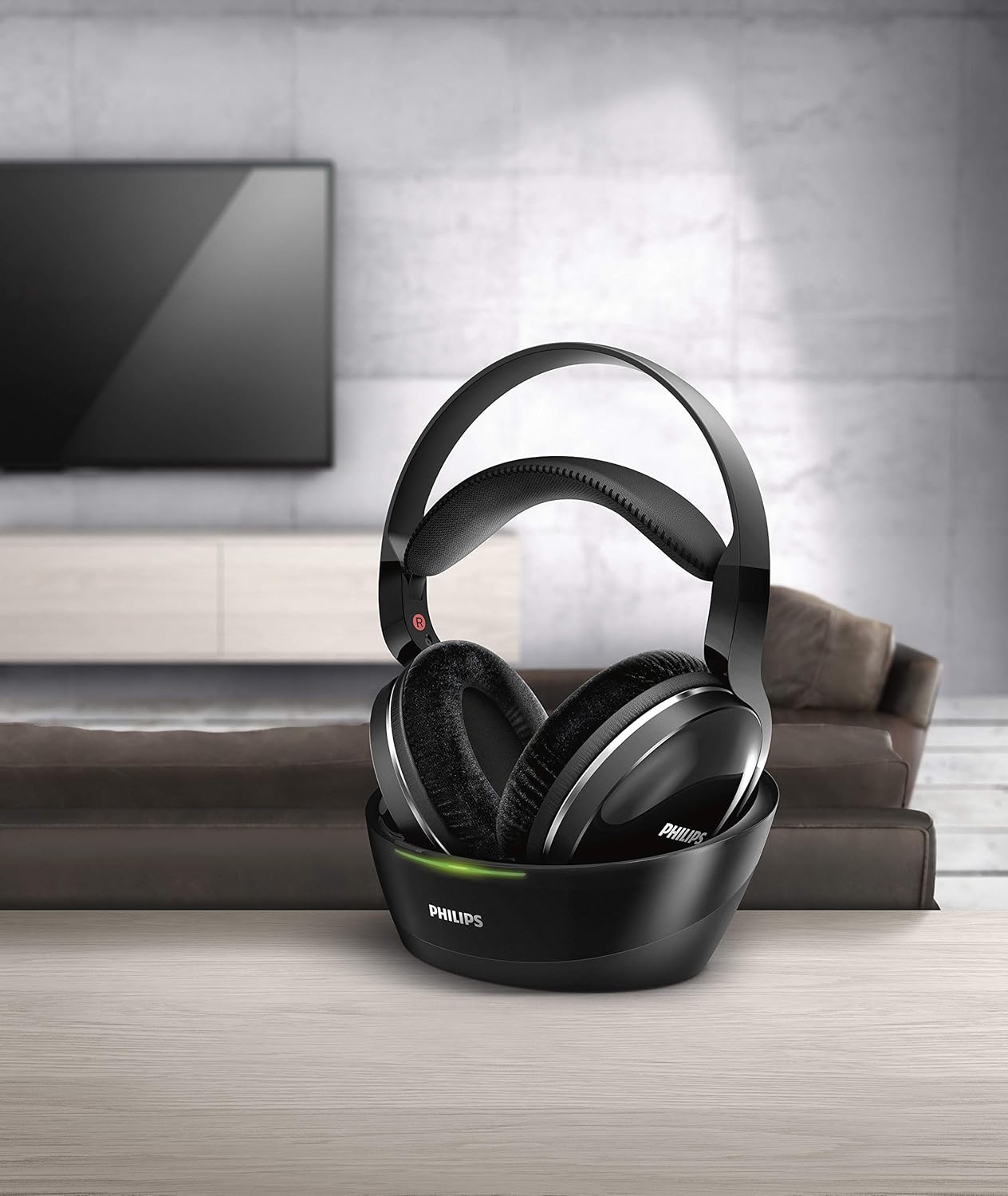 - Lieferumfang: Philips kabelloser TV Kopfhörer over Ear SHD8850/12 Wireless HiFi Kopfhörer (exzellenter Sound, Hi-Res Audio, 30 m Reichweite, Dockingstation, Velours-Ohrpolster) Schwarz; Netzteil, Optisches Kabel