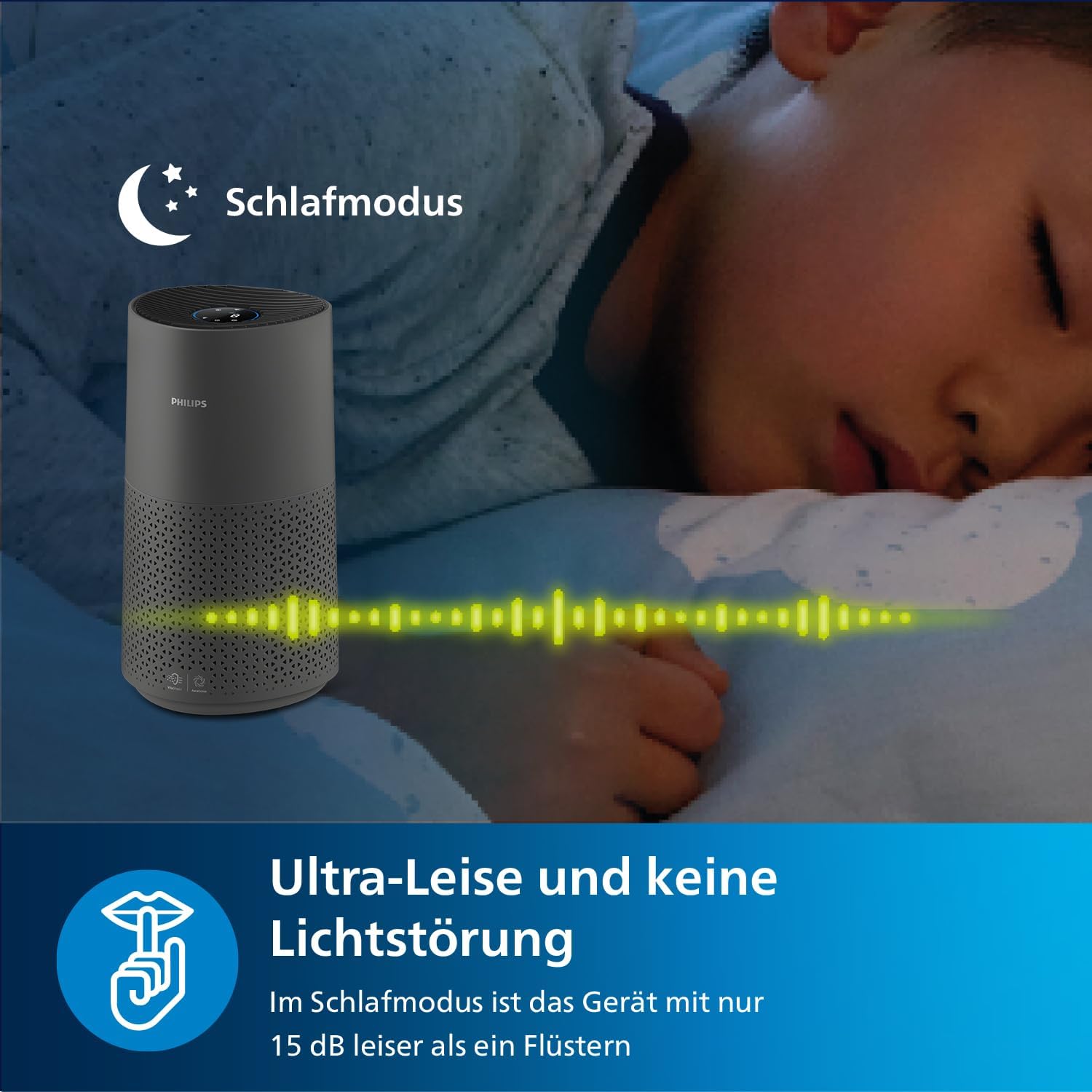 - "Ultraleiser Schlafmodus: Unser Luftreiniger arbeitet nahezu geräuschlos und sorgt für saubere Luft, während Sie schlafen. Sowohl der Luftqualitätsindex als auch das Licht auf der Benutzeroberfläche können gedimmt oder ausgeschaltet werden, um jede