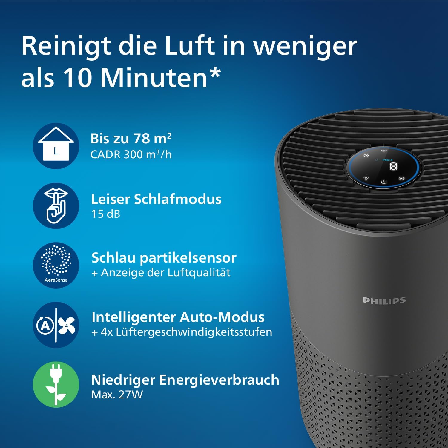 - Intelligente Sensoren erkennen die Luftqualität: Der Luftreiniger zeigt die Luftqualität in Echtzeit an - AeraSense-Sensor wählt auf intelligente Weise die richtige Geschwindigkeit für Ihr Zuhause - Reinigt einen 20 m² grossen Raum in weniger als 10