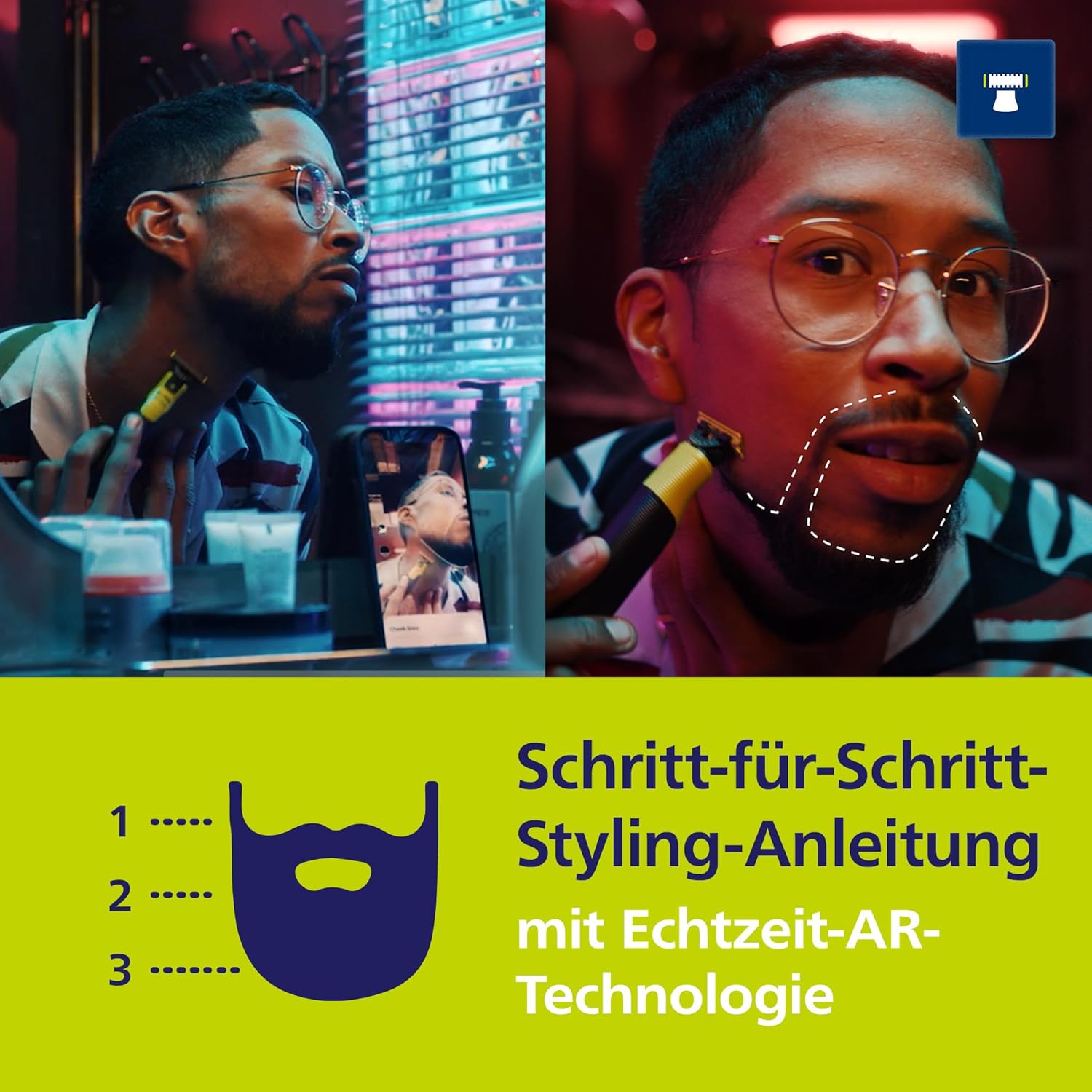 - Personalisiertes Erlebnis: Mit der kostenlosen OneBlade App wissen Sie, wann Sie eine Klinge wechseln oder den Akku aufladen müssen und erhalten Empfehlungen basierend auf Ihrer Routine