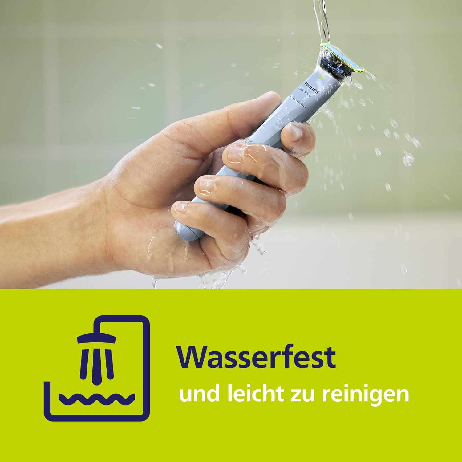 - Nass oder trocken rasieren, selbst unter der Dusche. Einfach zu reinigen.