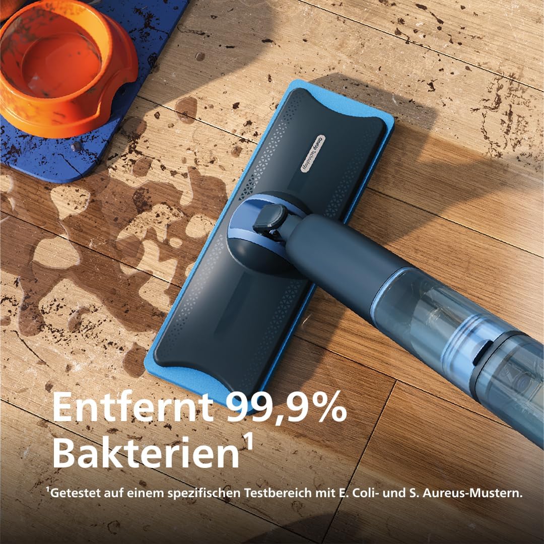 - DOPPELT SO SAUBERE BÖDEN WIE MIT MANUELLEN WISCHMOPPS²: Geniessen Sie eine gründliche Reinigung, die Fett, Flecken, klebrigen Schmutz und feinen Staub beseitigt und dabei bis zu 99,9 % der Bakterien entfernt¹. Geeignet für Hartböden,