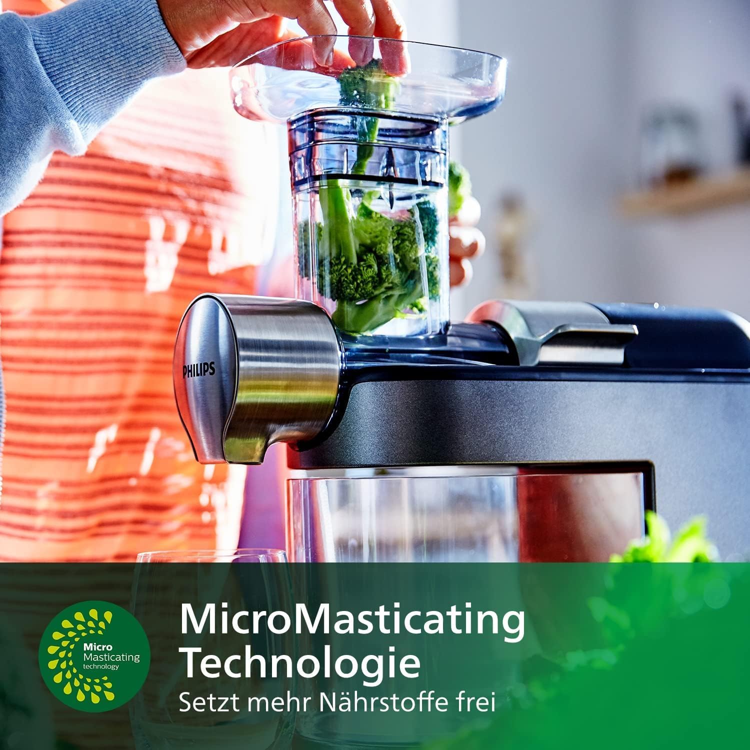 - Ihr täglicher Ernährungs-Boost in nur einer Minute: Der für Gemüse- und Fruchtsaft geeignete Slow Juicer extrahiert bis zu 90 % aller Nährstoffe*