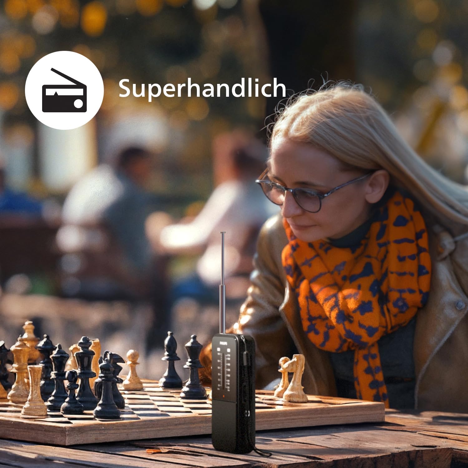 - BESONDERS HANDLICH: Dieses Kofferradio passt in Ihre Tasche oder kann anhand einer Kordel an Ihrem Handgelenk befestigt werden. Das Radio verfügt ausserdem über eine Kopfhörerbuchse für privates Zuhören, damit es für jede Situation geeignet ist.