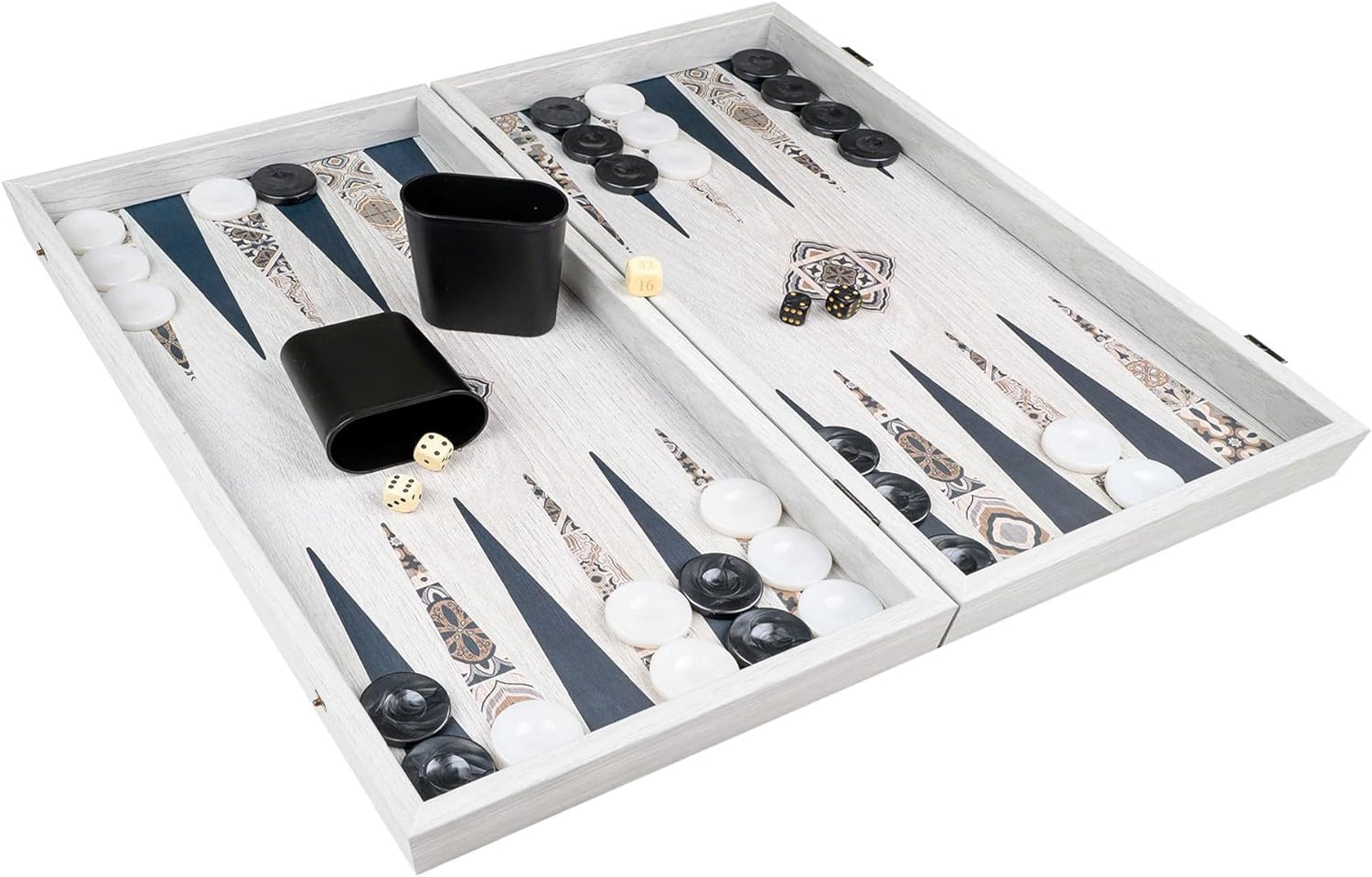 - Mit Spielsteinen und Würfeln aus Kunststoff und Stoffbeutel für die Spielsteine