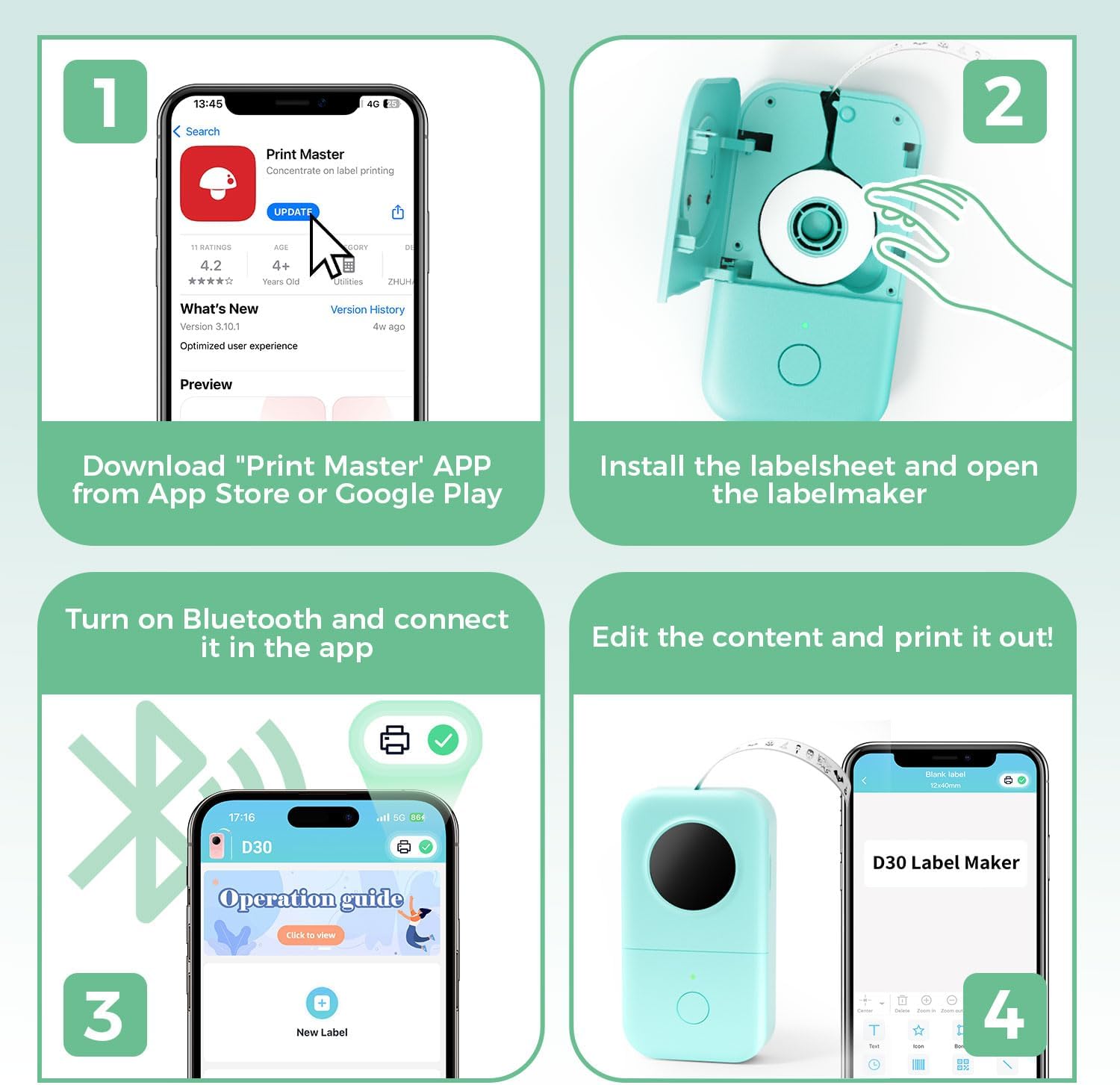 - √Sofortdruck: Der Etikettendrucker Phomemo D30 kombiniert das Drucken mit neuen Technologien. Der neue tragbare Mini-Etikettendrucker ist mit Smartphones kompatibel. Unterstützungssystem: anwendbar auf IOS 8.0 + Android 4.0 und höhere Versionen. Der