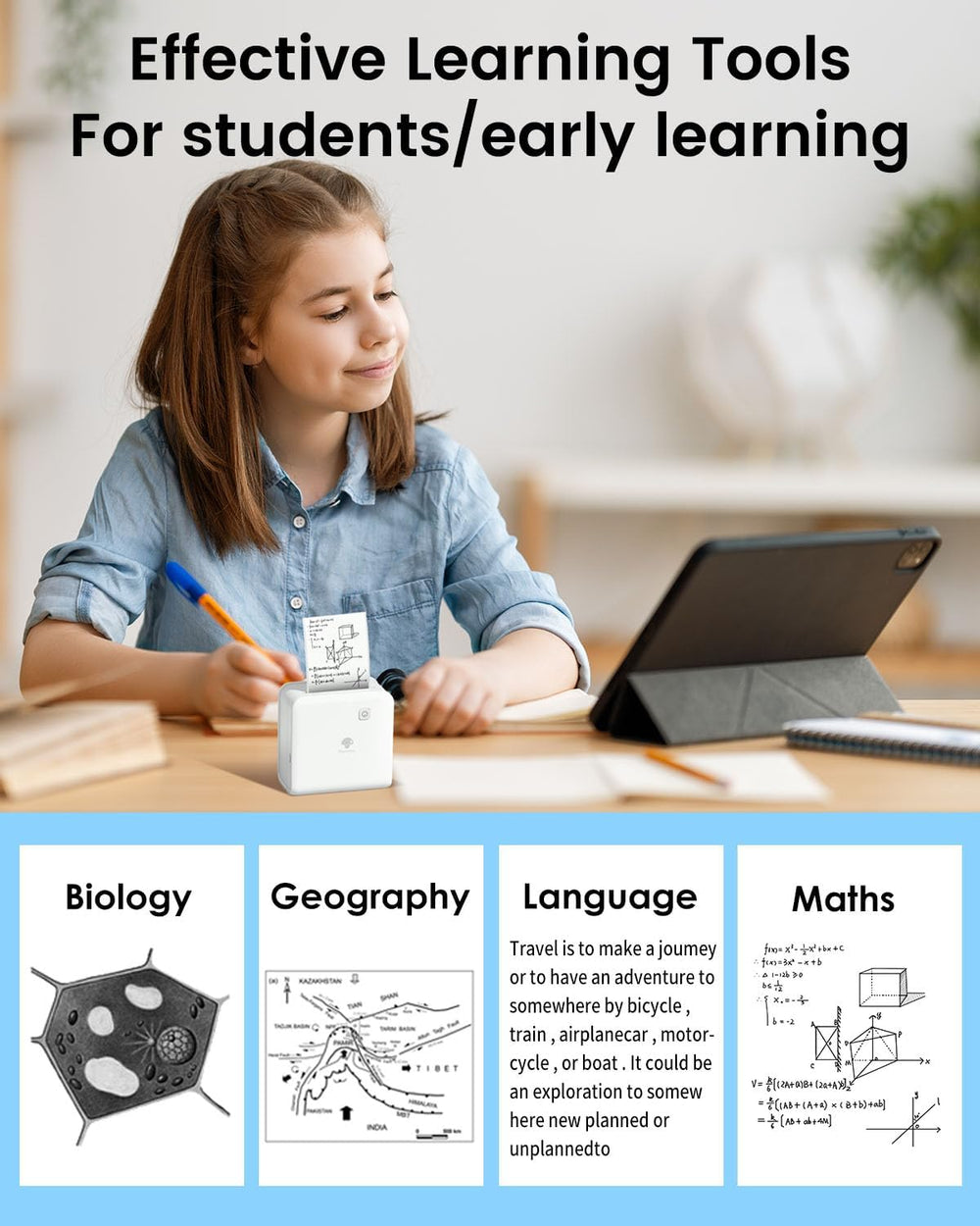 - Inklusiver Thermodrucker: Keine Tinte oder Toner erforderlich, spart Kosten. Empfohlen für die Verwendung mit Phomemo Druckpapier