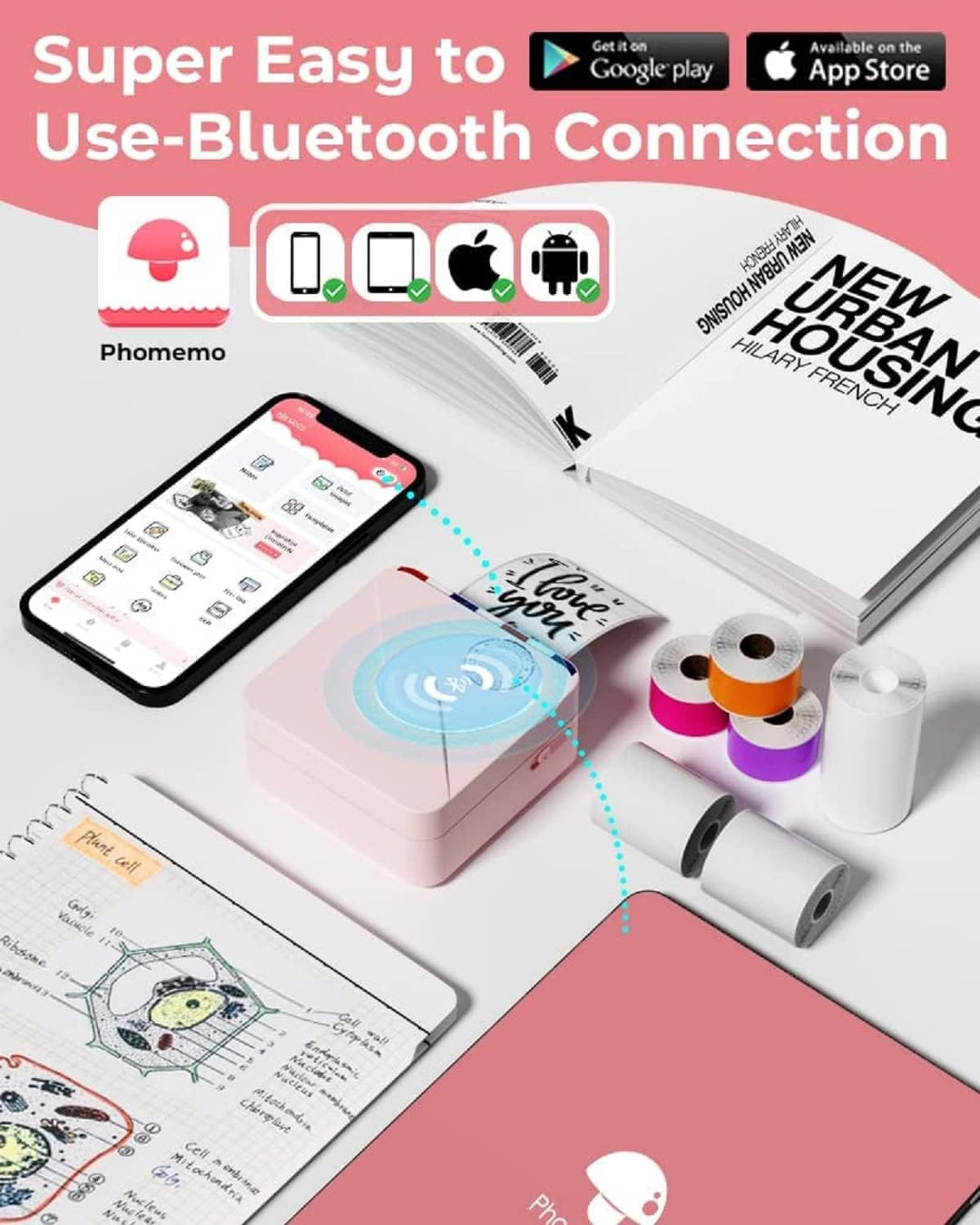 - [Bluetooth-Verbindung, kein Tintendruck] - Bluetooth Verbindung. Kompatibel mit Smartphone und Tablet. Die Thermodrucktechnologie macht den Farbbanddruck überflüssig und spart mehr Tintenkosten!