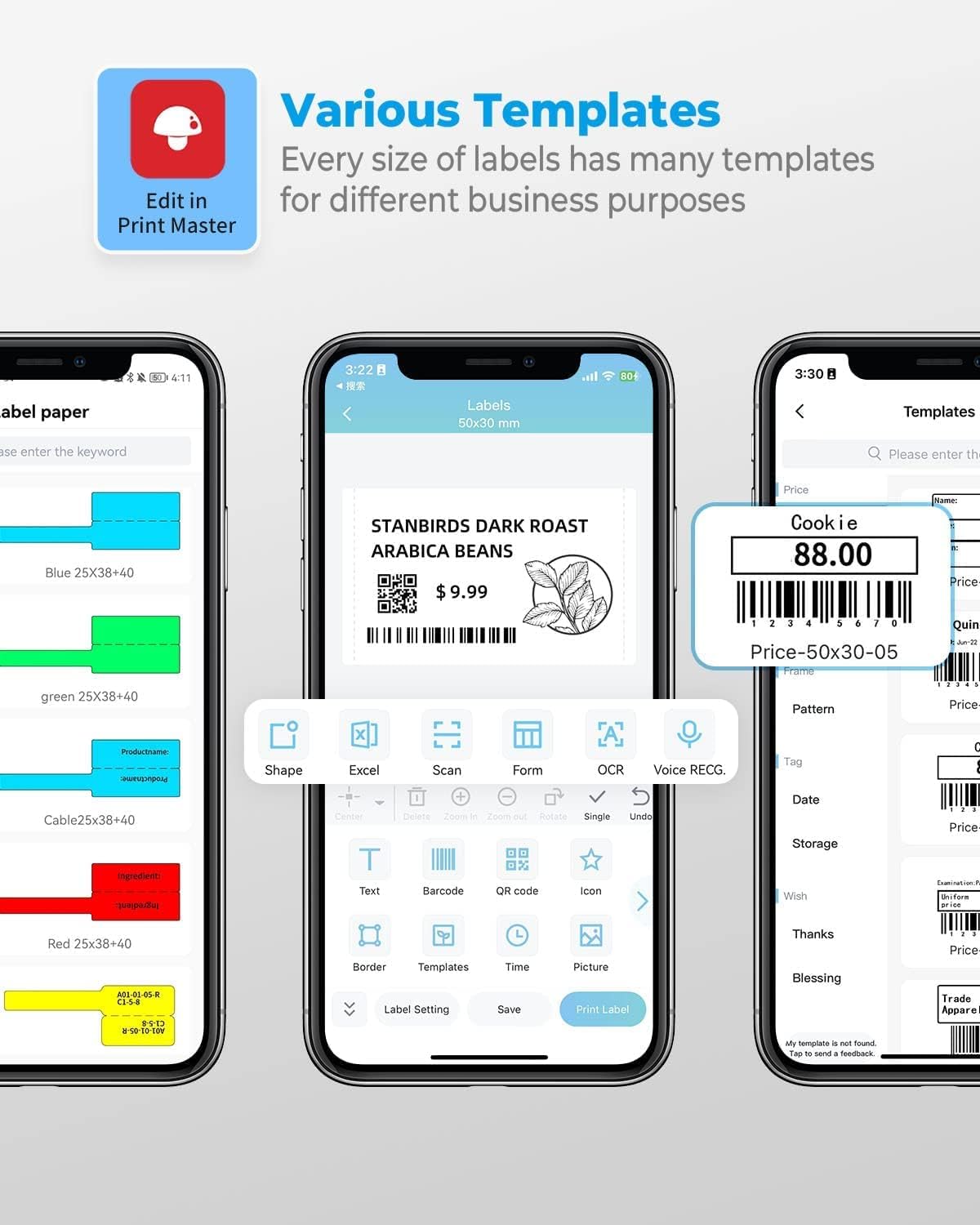 - LEISTUNGSSTARKE PRINT MASTER APP ➡ Verwenden Sie die Print Master App, sie bietet alle kostenlosen, gebrauchsfertigen Etikettenvorlagen für alle oben genannten Zwecke, um Ihre Effizienz zu steigern. Sie können auch Ihre eigenen Vorlagen einrichten