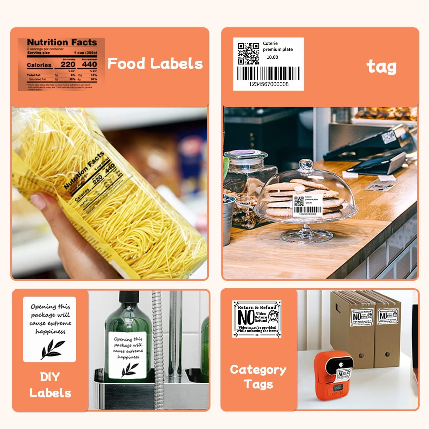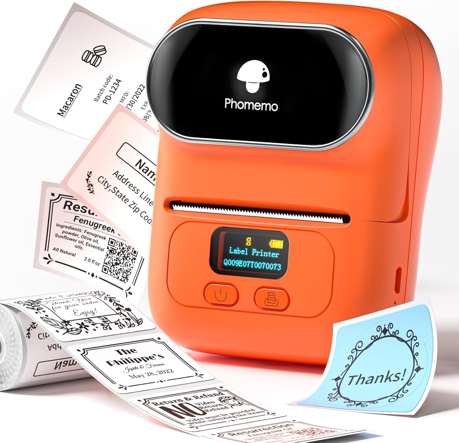 - Schnelldruck-M110 ist ein Thermoetikettendrucker,Keine Tinte und kein Farbband erforderlich, was eine Menge Kosten spart, der Kosten spart.unterstützt den Stapeldruck und spart kleinen Unternehmen mehr Zeit! Und Phomemo bietet eine Vielzahl von Stilen