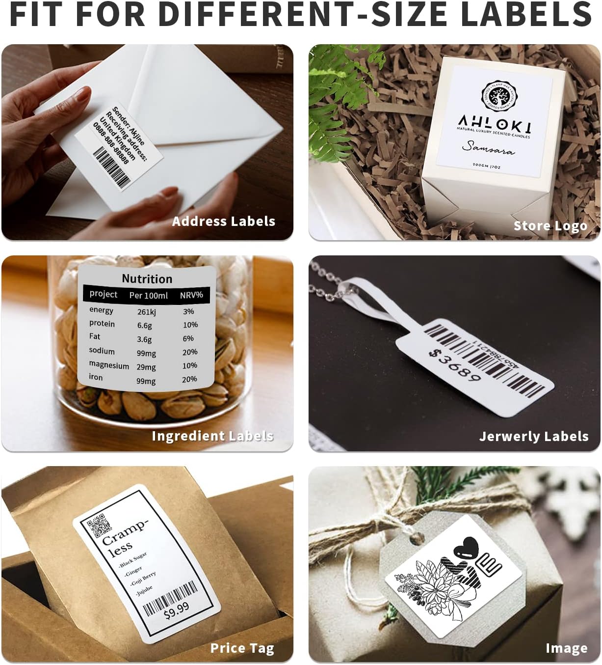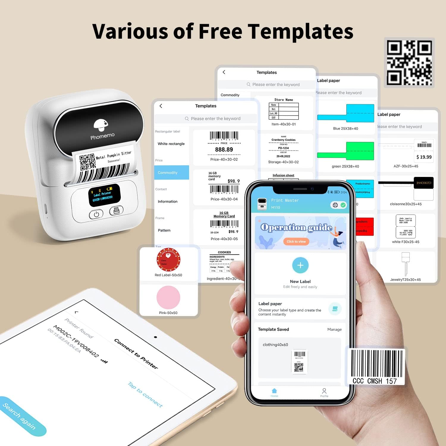 - Umfangreiche Vorlagen - In der APP können Sie ganz einfach jedes Etikett drucken, das Sie benötigen, Etikettendrucker für Produkte, Adressetiketten, Bekleidungsetiketten, Preisetiketten, Gesundheitsetiketten, Schmucketiketten, Ordneretiketten,