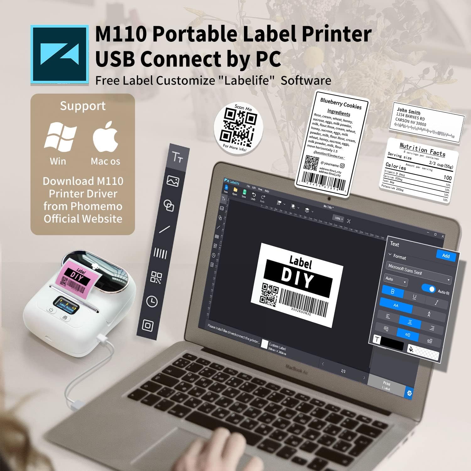 - Easy-Using M110 Label Maker Sticker Printer - Mini und kleine tragbare Bluetooth Wireless mobile Etikettendrucker, synchronisieren Sie mit Ihrem mobilen iOS oder Android-Telefon in 2 Sekunden (NICHT für PC oder Mac).M110 Label Maker Print reibungslosen