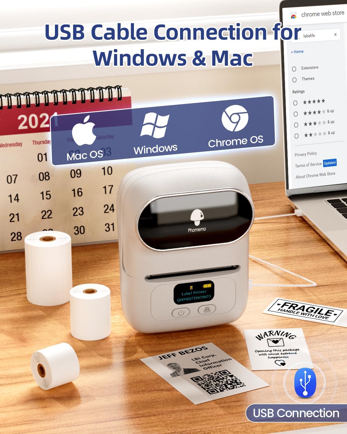 Phomemo M110 Etikettendrucker Bluetooth Etikettiergerät Beschriftungsgerät Selbstklebend, Label Prin