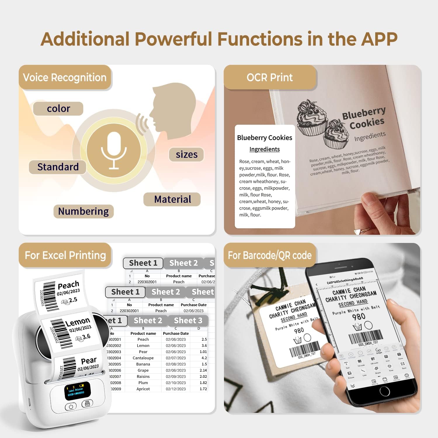 • Vielseitiger Etikettendrucker - Der M110 Tragbarer Etikettendruckerist vielseitig, kreativ und wird häufig von kleinen Unternehmen eingesetzt. Kleidung, Lebensmittelzutaten, Kunsthandwerk, Einzelhandelsartikel, Schmuck und vieles mehr können problemlos