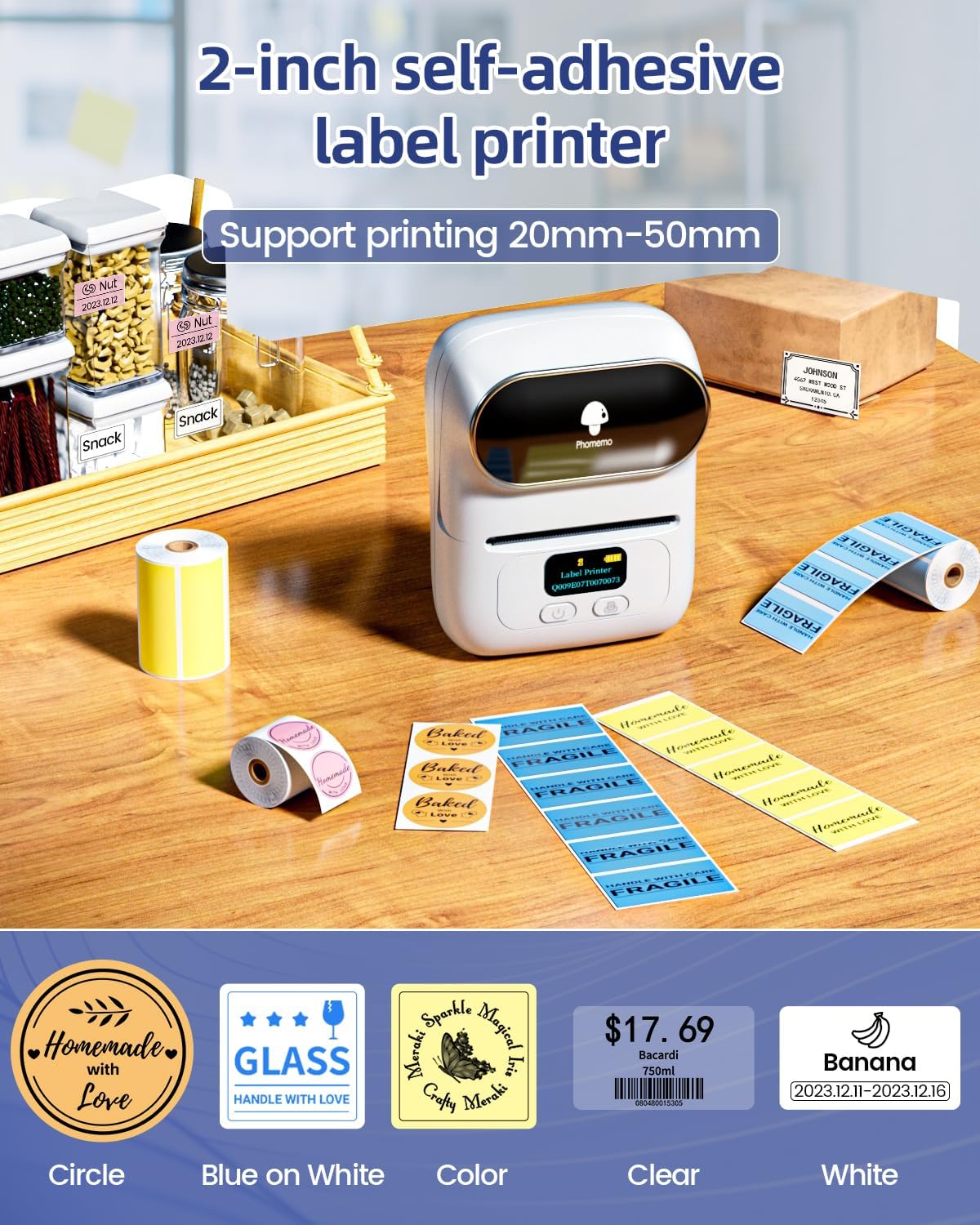 • Gestalten Sie Ihre eigenen Etiketten - Phomemo Etikettendrucker Selbstklebend bieten Ihnen eine grosse Auswahl an Etikettenbändern, z. B. farbige Etiketten, transparente Etiketten, runde Etiketten, rechteckige Etiketten, Preisetiketten und mehr. Sie