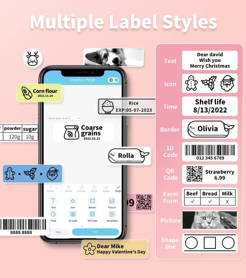 - Praktisch für die Organisation: Die Mini-Labelmachermaschine unterstützt verschiedene Druckbreiten von 6 bis 15 mm. Es produziert Namensschilder, Datumsschilder, Kategorie-Etiketten, Notizen und vieles mehr für Ihre Organisation zu Hause und im Büro.