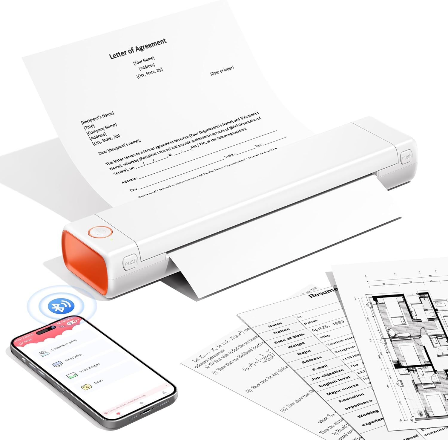 • Neuer tragbarer Drucker: Phomemo durchbricht die Farbgrenze mit dem neuen tragbaren Drucker M08F Weiss und Orange, Ein-Klick-Druck für tragbare Drucker, unser Reisedrucker ist perfekt für den Druck vor Ort, wo immer Sie ihn brauchen, wie z. B. auf
