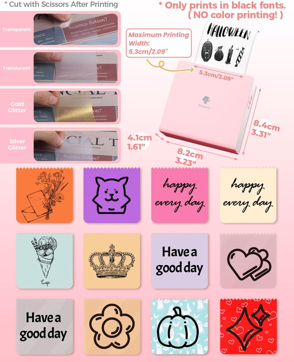 Phomemo M02 Thermodrucker Mini Wireless-Taschendrucker On-The-Go-Empfangsdrucker, 203 DPI, kompatibe