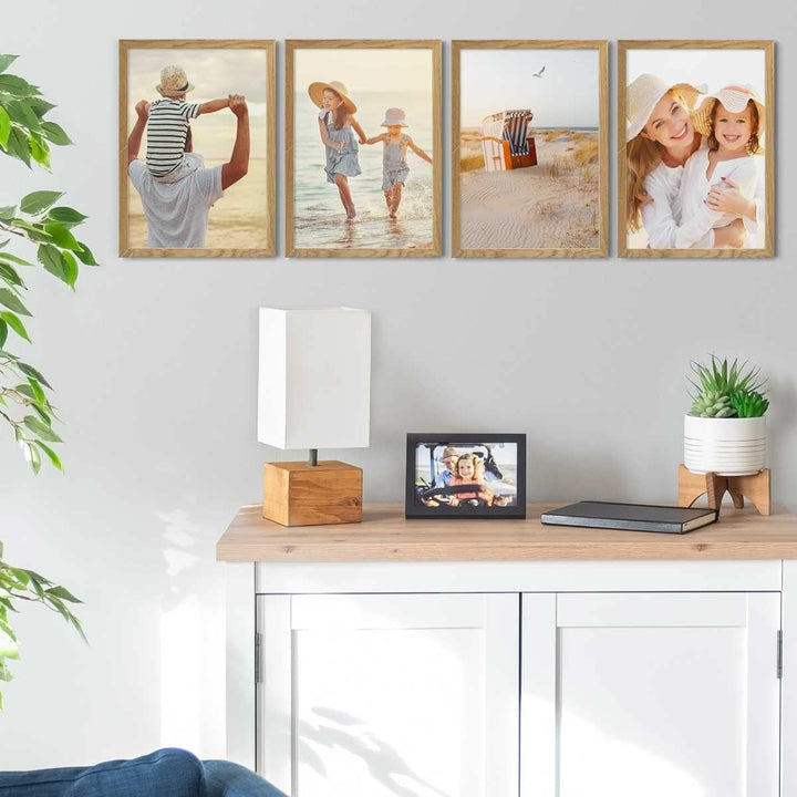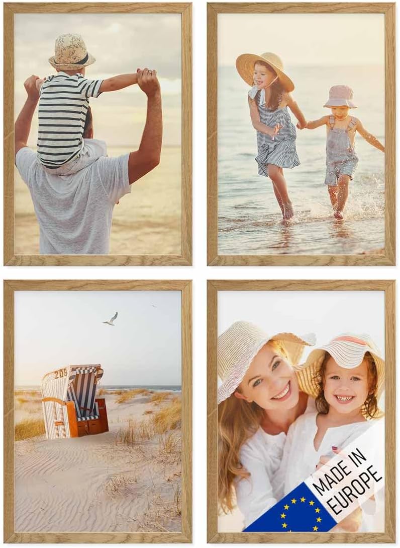 - 4 solide ECHTHOLZ-BILDERRAHMEN, hergestellt in der EU, zum AUFHÄNGEN im HOCH- oder QUERFORMAT