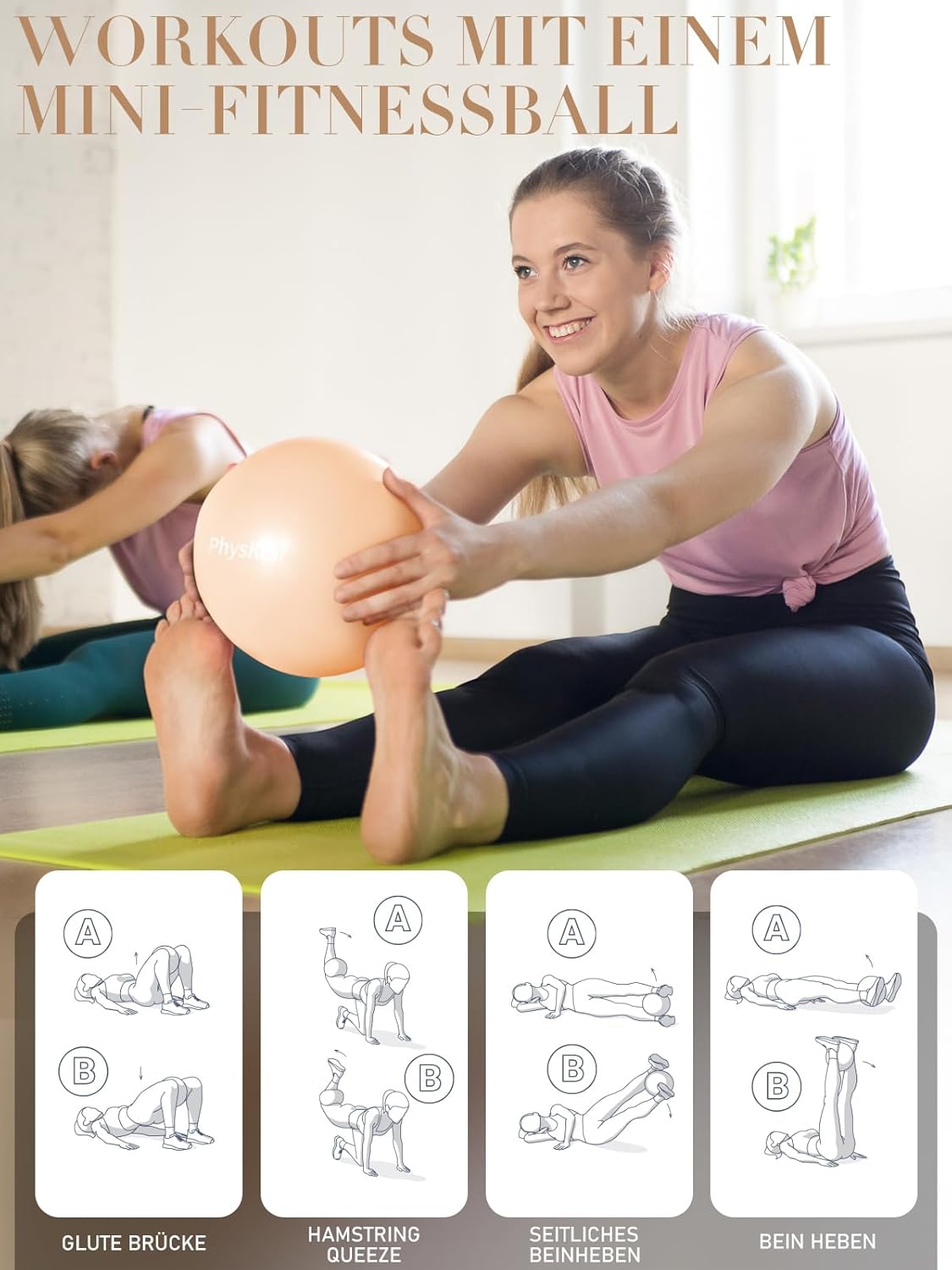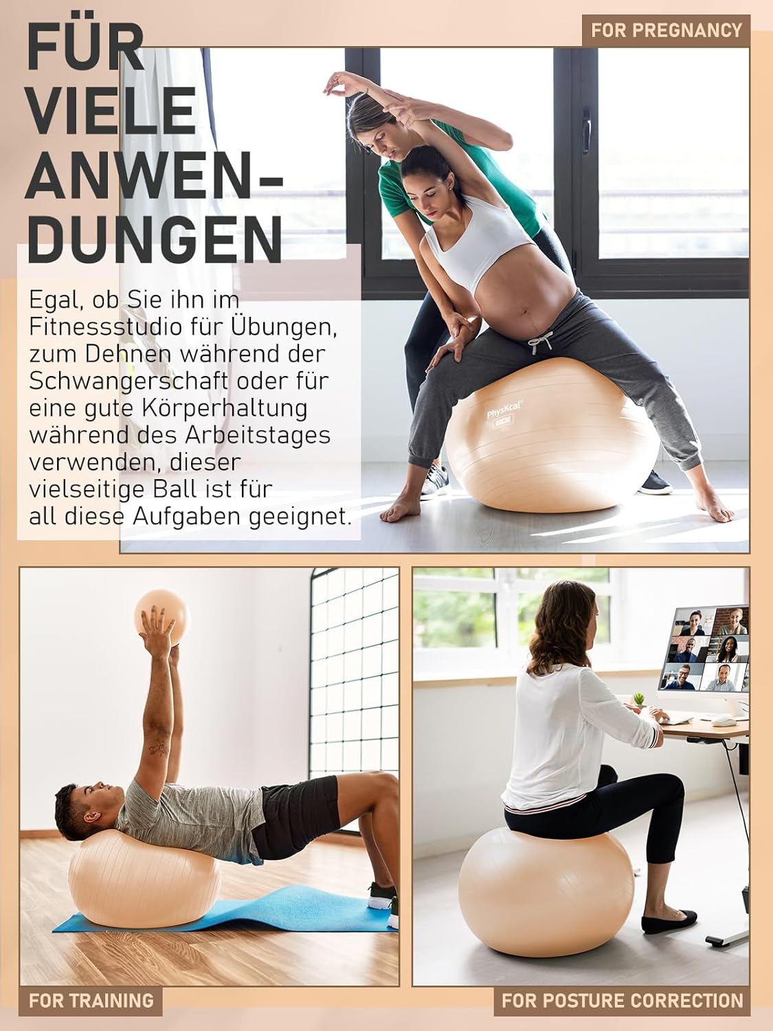 - Physkcal 75 cm Dicker Beige Gymnastikball und 23 cm Pilatesball Set, Anti Burst Gymnastikball, Rutschfester Sitzball, Balanceball, Yogaball für Zuhause, Fitnessstudio und Büro