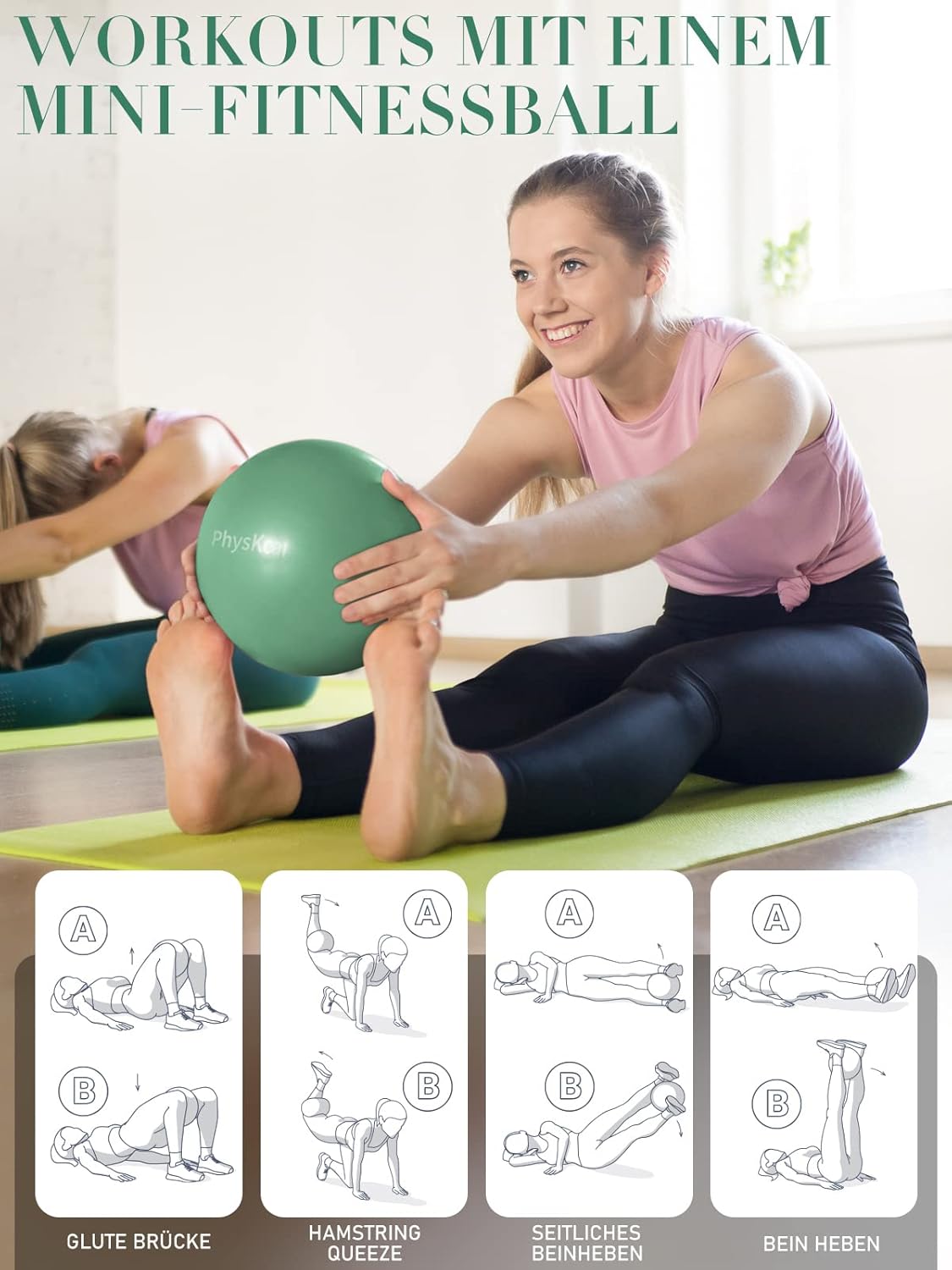 PhysKcal Gymnastikball und 23 cm Pilatesball Set, Anti Burst Gymnastikball, Anti-Rutsch-Sitzball, Ba