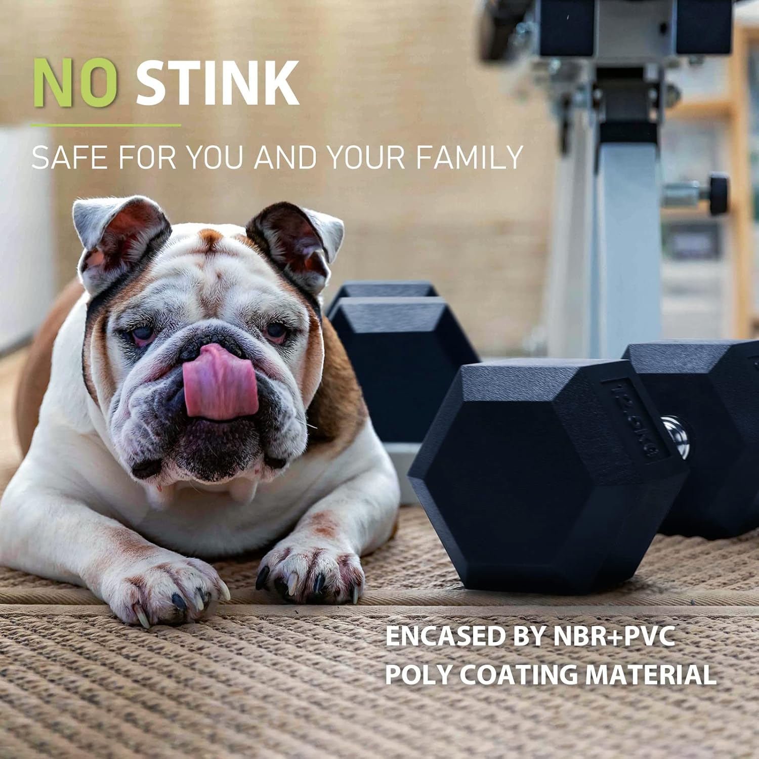 - Keine Geruchsbeschichtung: Sagen wir Nein zu einem Augen-bewässernden Geruch oder dem Verweilen in den Händen von traditionellen Gummihanteln Umhüllt in einer 8 mm dicken Polybeschichtung aus NBR und PVC übergossener Injektionsmischung, sind diese