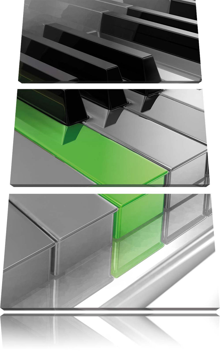 Piano Green Klaviertasten schwarz/weiss 3-Teiler Leinwandbild 120x80 Bild auf Leinwand