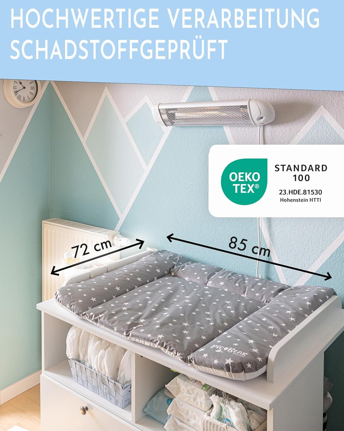 - β πππππππππππ πππππππππ: Die waschbare, schadstoffgeprΓΌfte und antibakterielle Wickelunterlage ist nach dem-Standard 100 zertifiziert und ΓΌberzeugt auch mit vielen verschiedenen