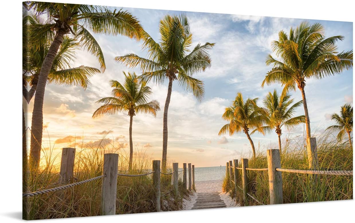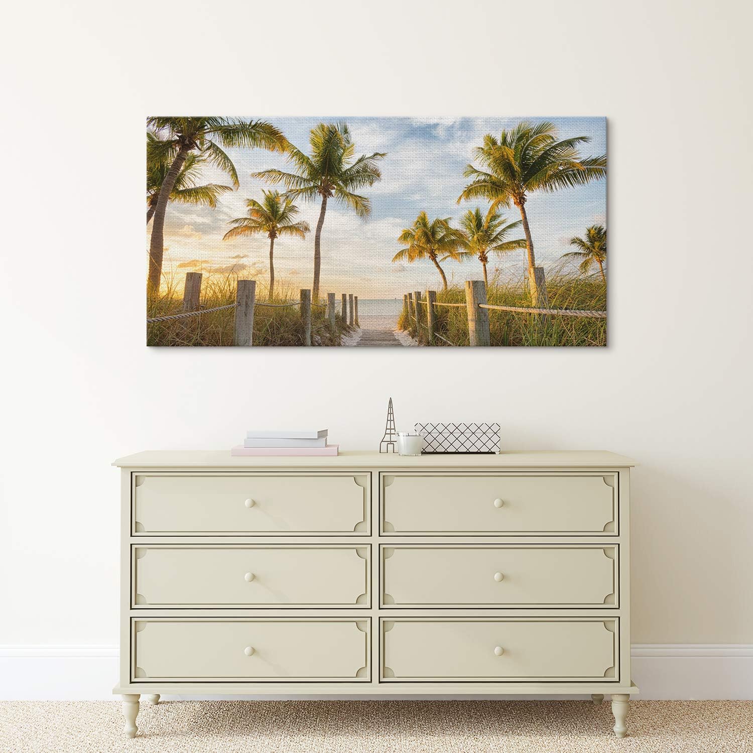 PICANOVA – Bild auf Leinwand Palmenweg zum Meer 100x50cm – Leinwandbild – Premium Leinwanddruck – Wa