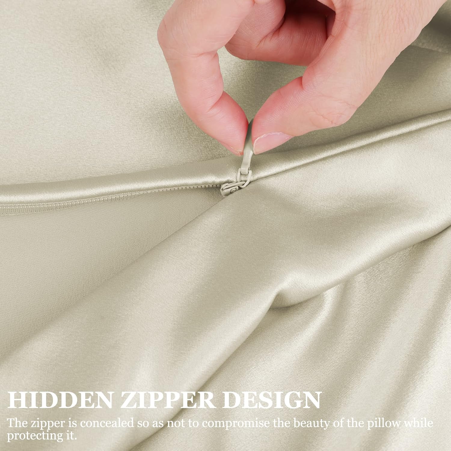 • Verstecktes Reissverschluss-Design: Das versteckte Reissverschluss-Design sorgt dafür, dass der Seidenkissenbezug Ihr Kissen über Nacht perfekt hält, ohne sich zu bewegen. Ein verdeckter Reissverschluss am Ende ermöglicht es Ihnen, das Kissen einfach