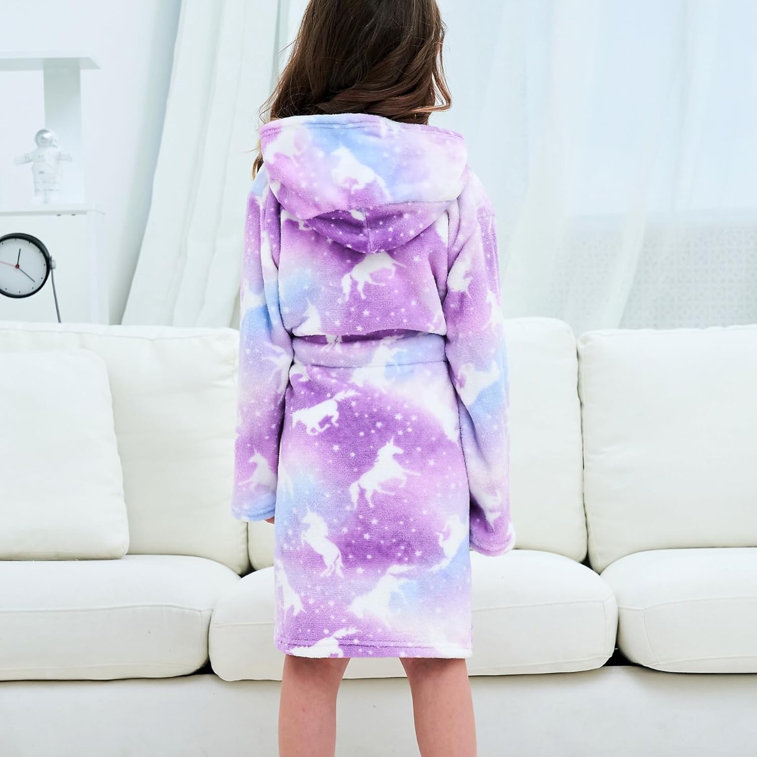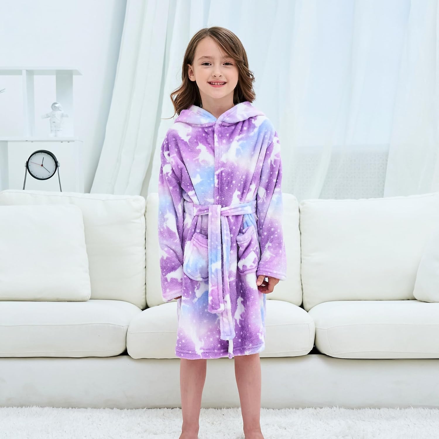 Piefry Weicher Bademantel mit Kapuze für Mädchen Fleece Morgenmantel Nachtwäsche Kinder 5-6 Jahre Vi