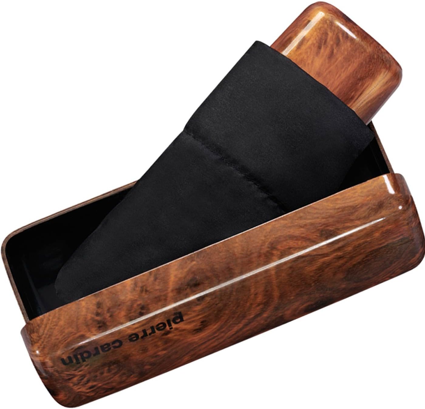 PRODUKTBESCHREIBUNGEN Ultraleichter Regenschirm, zusammenklappbar, Schwarz, Etui in Nussbaum-Optik, ein aussergewöhnlicher Hand-Regenschirm für Herren. Dieser Regenschirm für Damen oder Herren ist vielleicht der kleine faltbare Regenschirm, den Sie suchen. Kompakt und ultraleicht, er passt sehr leicht in Ihre Handtasche oder Ihre Tasche. Die 6 Streben sind aus Aluminium. Fiberglas-Stränge reduzieren stark den Bruch bei einem Sturz und reduzieren Schäden durch starken Wind. Die schwarze Leinwand besteht aus wasserabweisendem Polyester. Der kleine Regenschirm wird in einem schicken Hardcase "Holzoptik" geliefert. Sehr schöner kleiner zusammenklappbarer Regenschirm von Pierre Cardin.