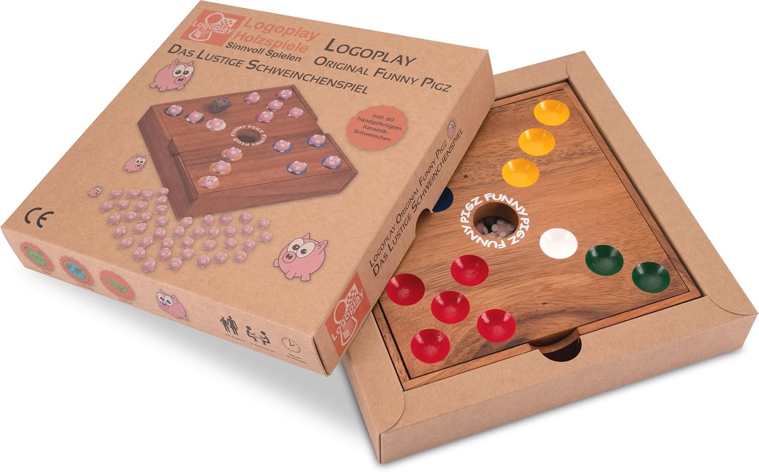 - Lustiges Würfelspiel für 2 bis 6 Spieler mit 60 Keramik-Schweinchen als Spielfiguren