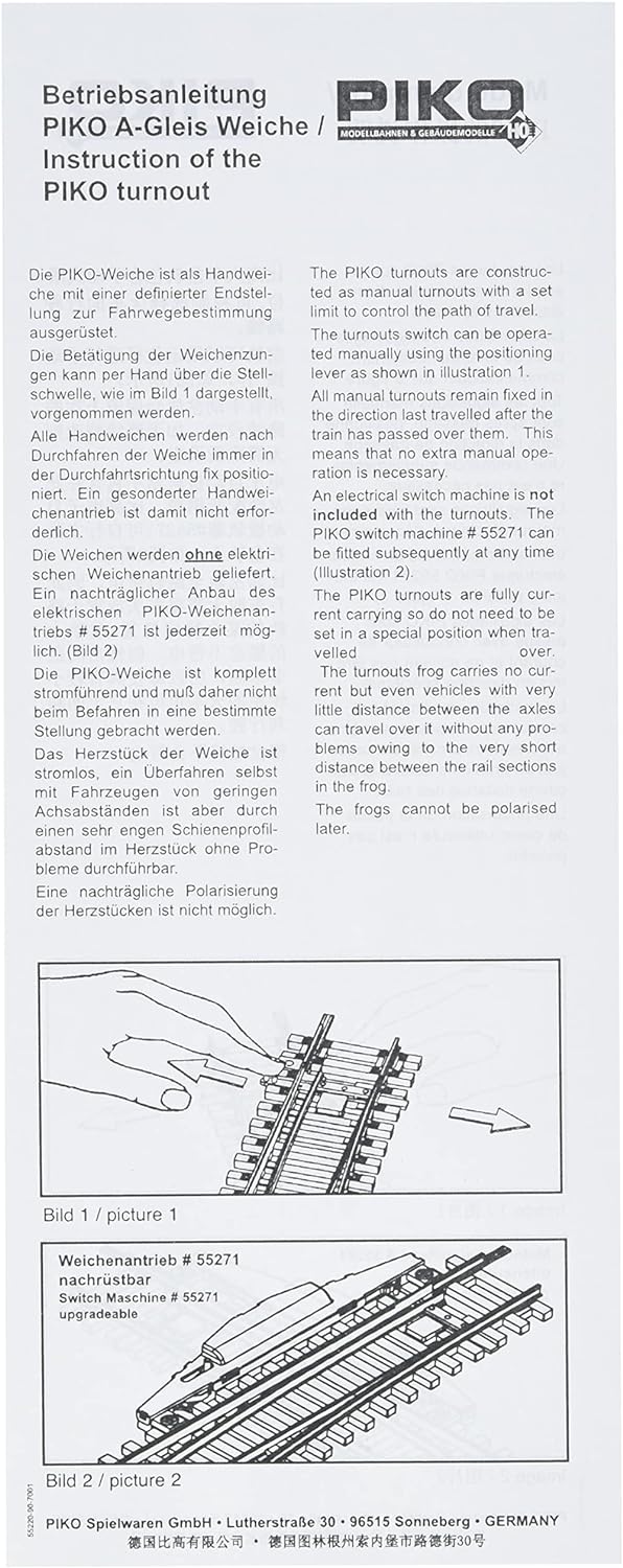 - 55225 H0 Piko A-Gleis Dreiwegweiche 239.07mm 15° 908mm