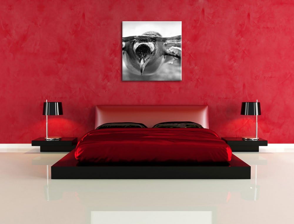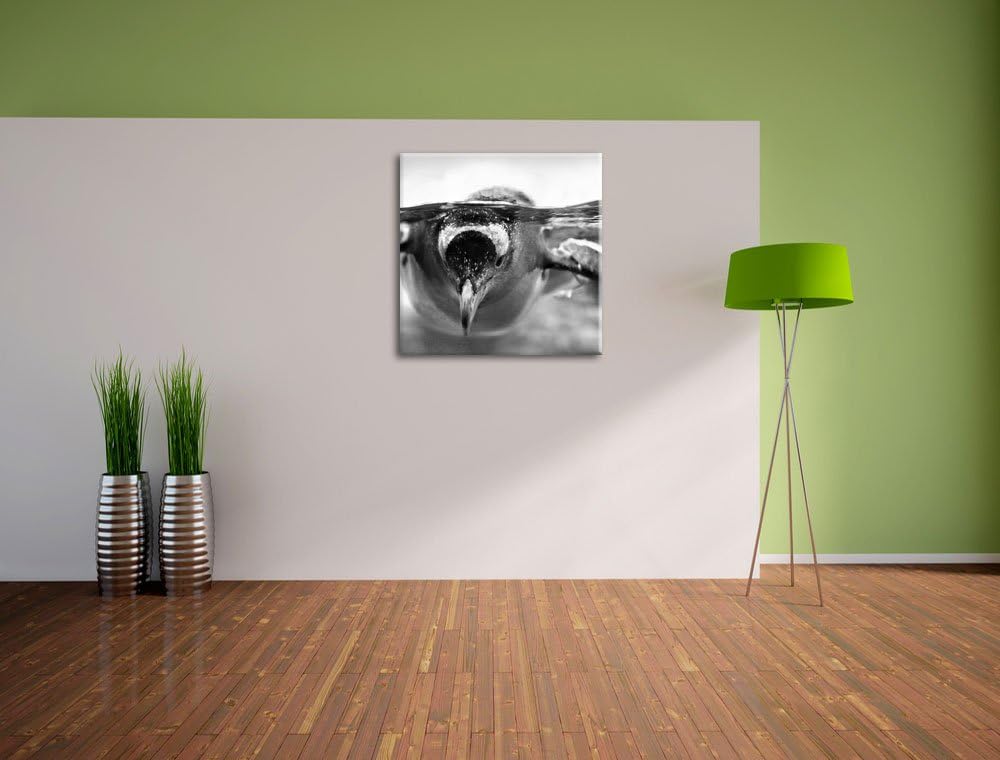 Pinguin im Wasser als Leinwandbild/Grösse: 70x70 cm/Wandbild/Kunstdruck/fertig bespannt, 70x70