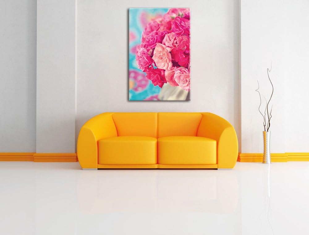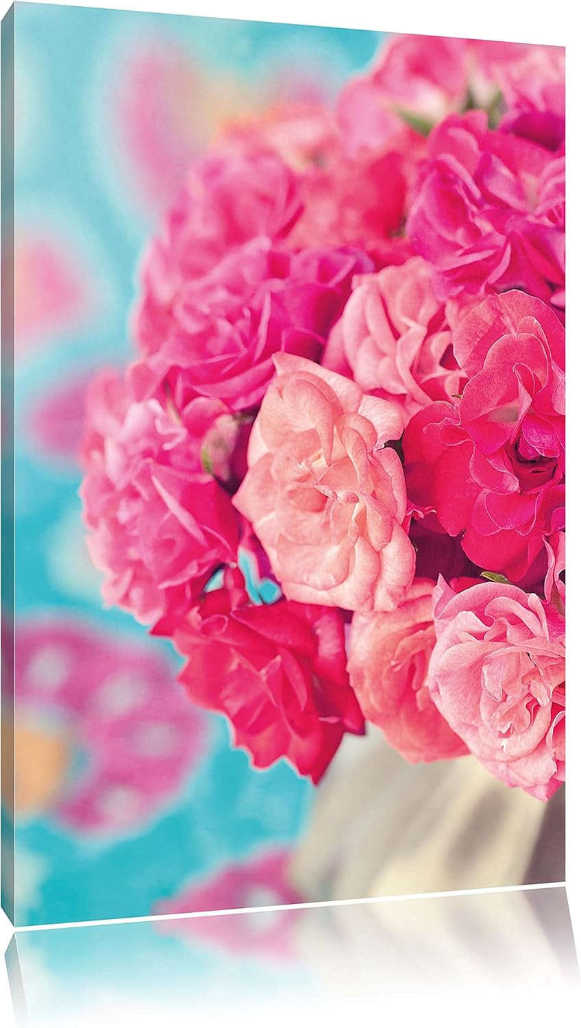 Pinker Rosenstrauss, Format: 100x70 auf Leinwand, XXL riesige Bilder fertig gerahmt mit Keilrahmen,