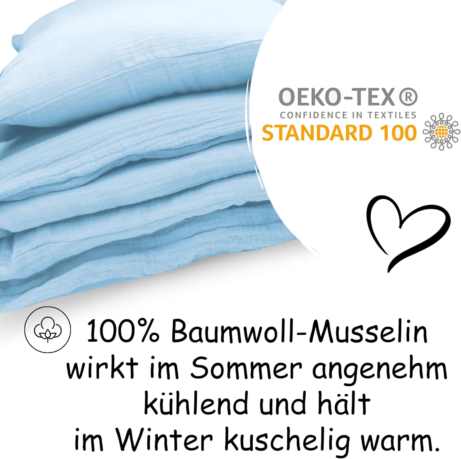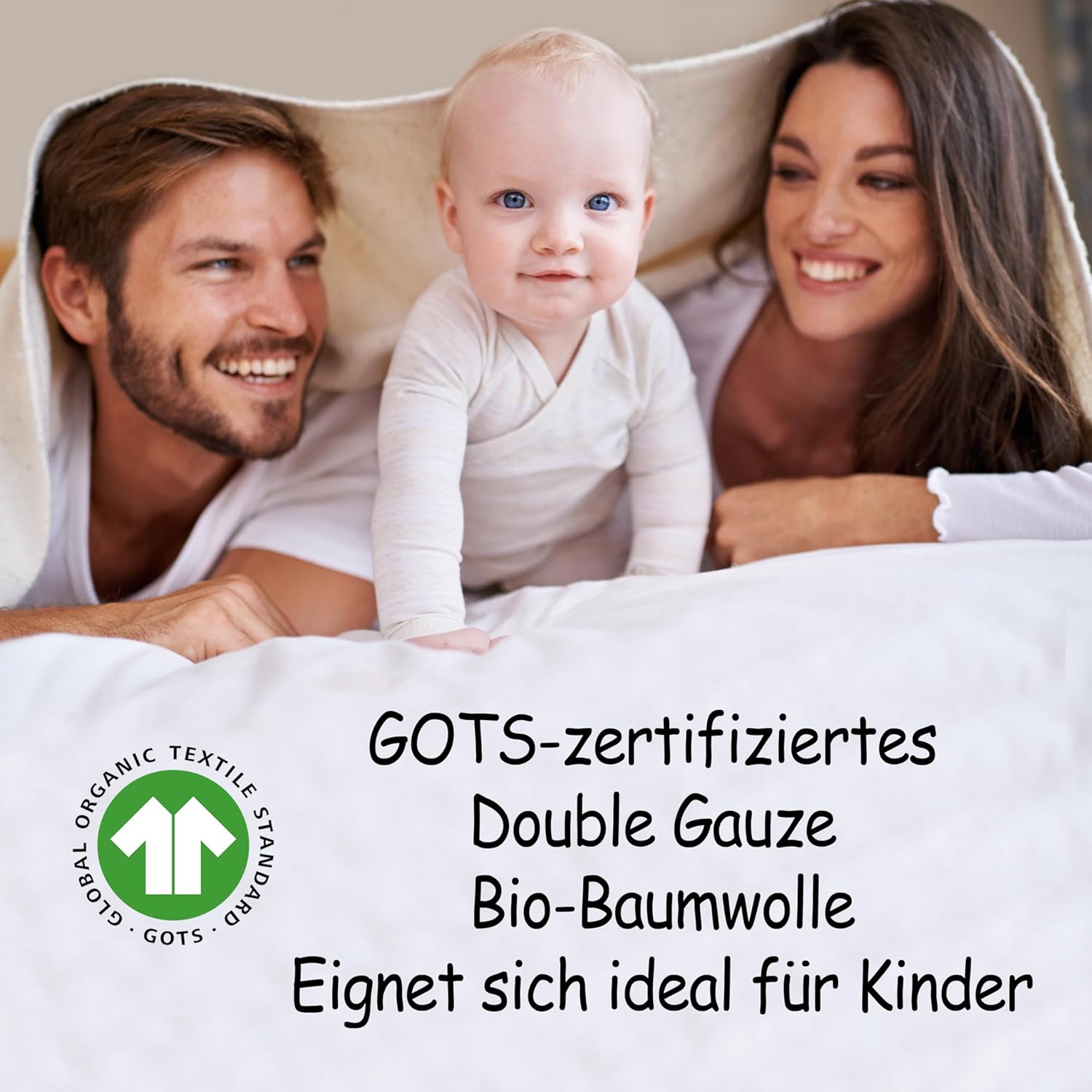 - ✅OHNE GMO. BIO-MUSSELIN: Der Stoff ist angenehm weich, pflegeleicht und hautsympathisch. Unsere Bettwäsche ist perfekt für jede Jahreszeit, da sie im Sommer angenehm kühlend wirkt und im Winter kuschelig warm hält. Zudem überzeugt die