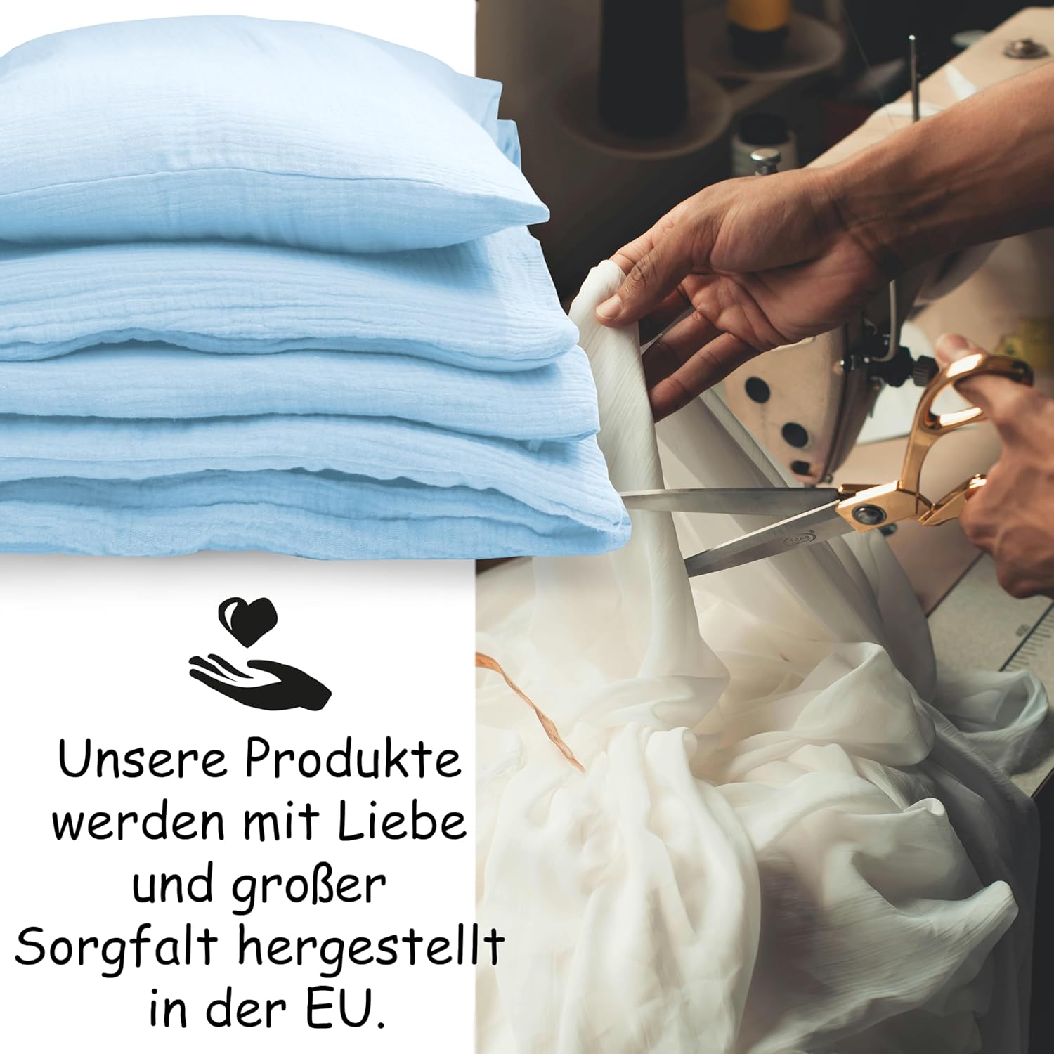 - ✅UNSERE MUSSELINE-PRODUKTE werden aus GOTS-zertifizierter Bio-Baumwolle in einer familiengeführten Fabrik in der Europäischen Union hergestellt.