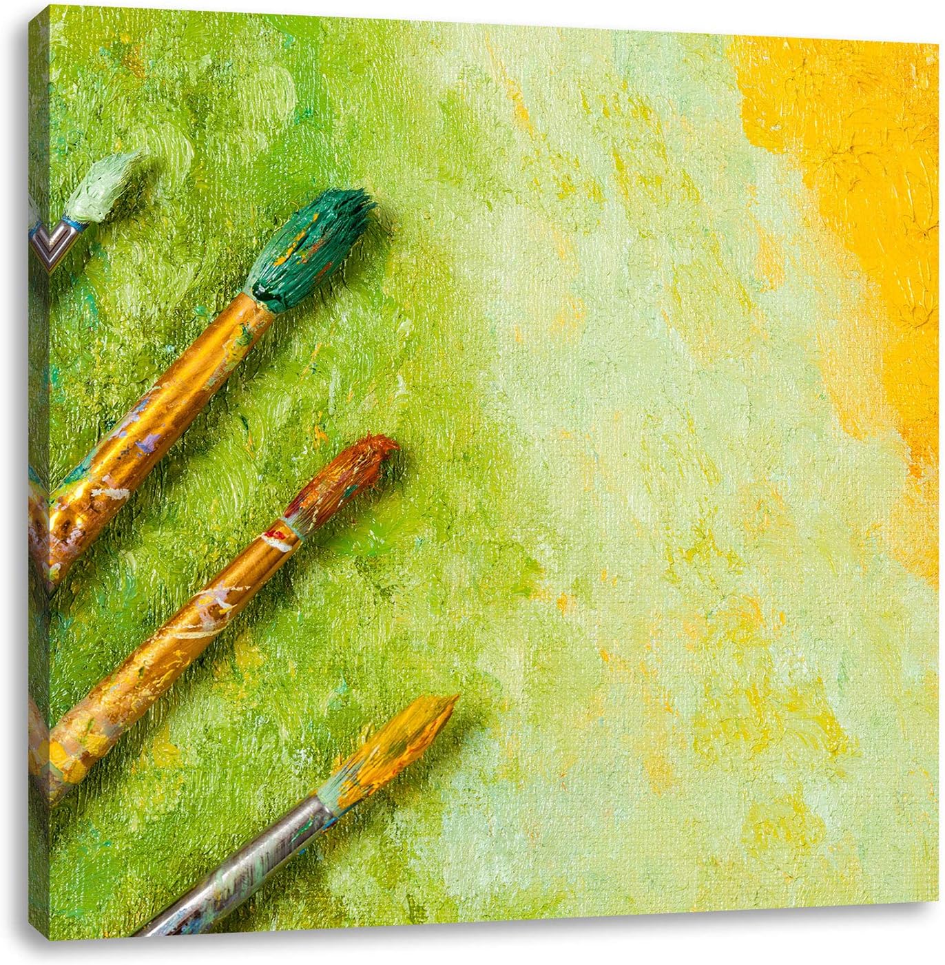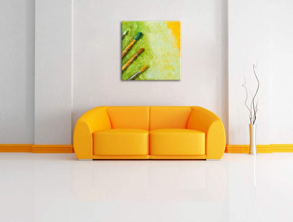 Pinsel mit gemalten Bild, Format: 70x70 auf Leinwand, XXL riesige Bilder fertig gerahmt mit Keilrahm